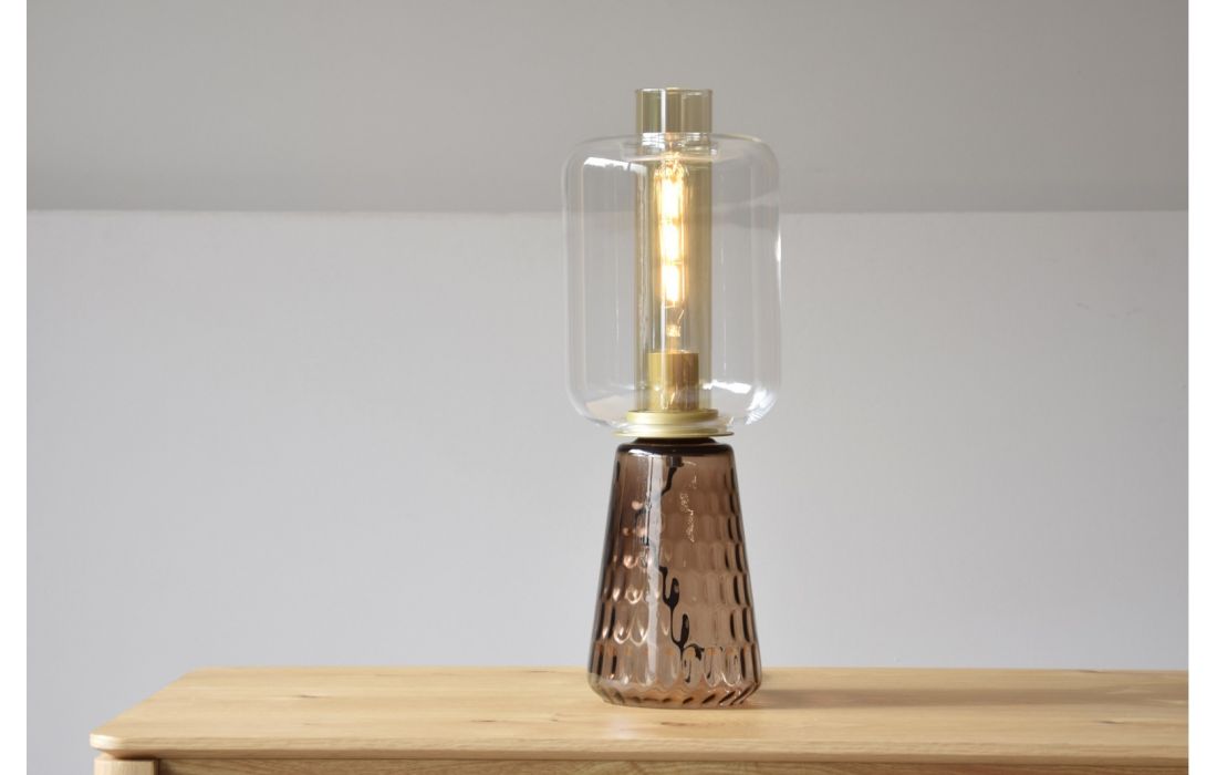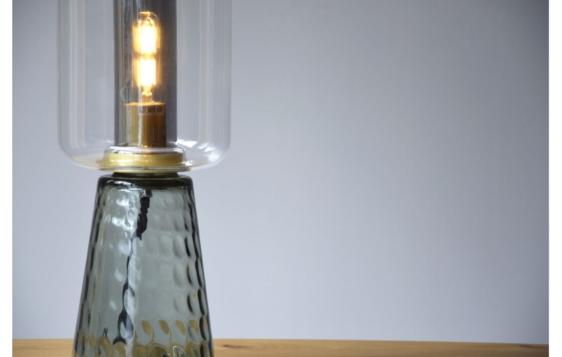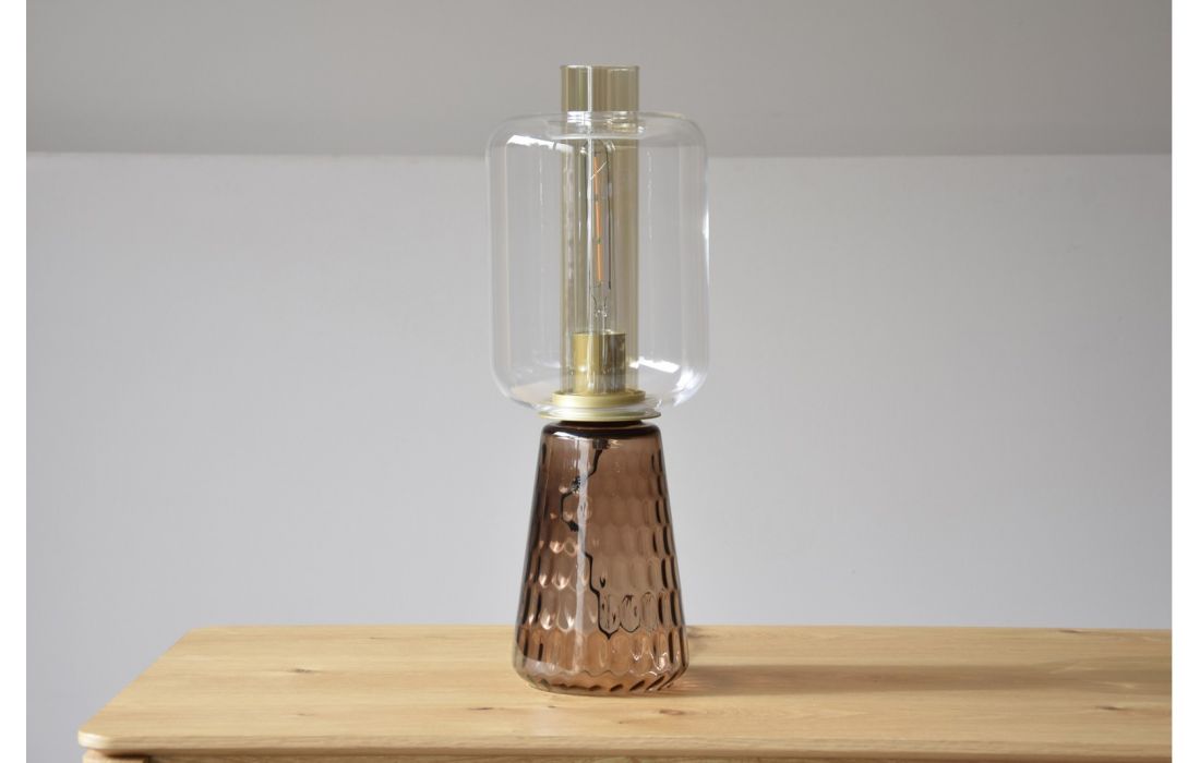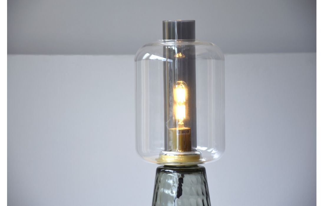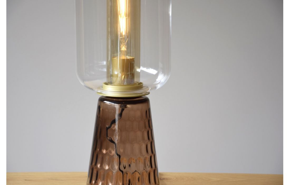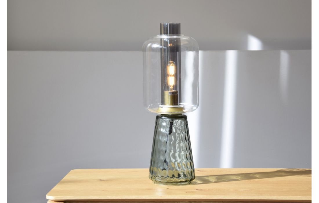 Table lamps made of textured and transparent glass.Dimensions in cm