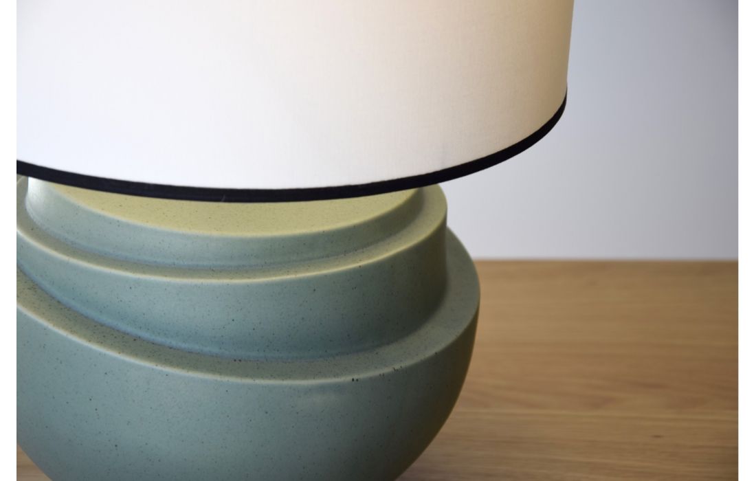 Ceramic paste table lamp in green tone.Dimensions in cm