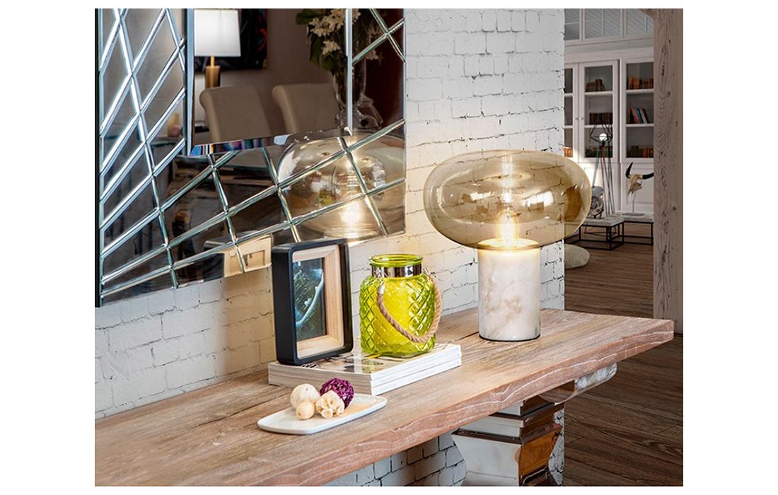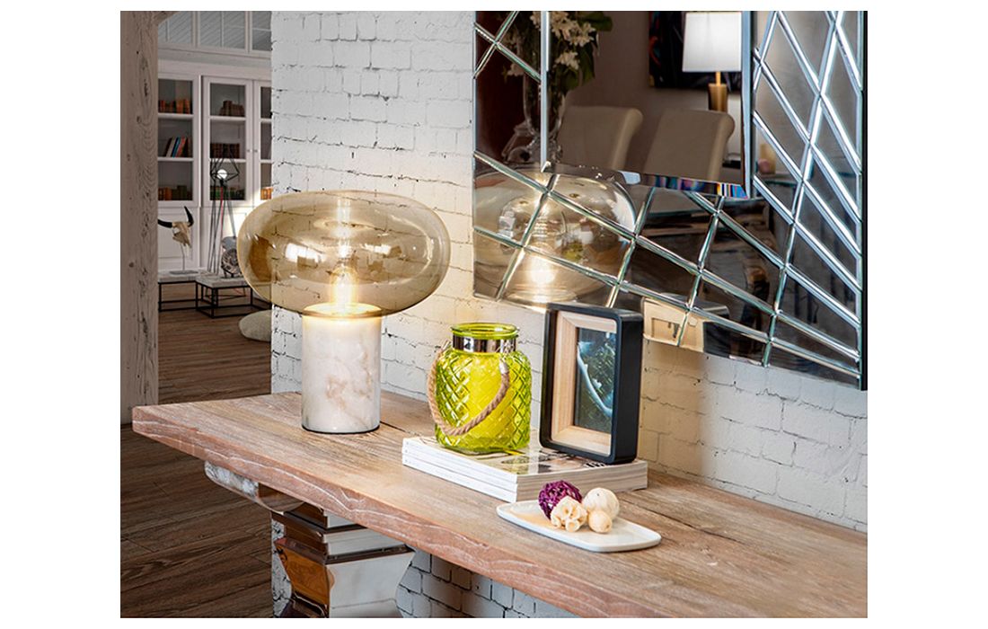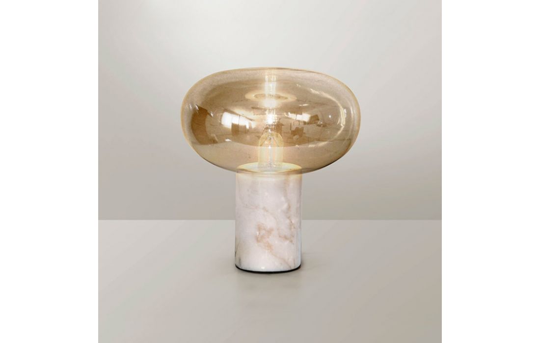 White marble 1-light table lamp. Amber blown glass lampshade.Dimensions in cm