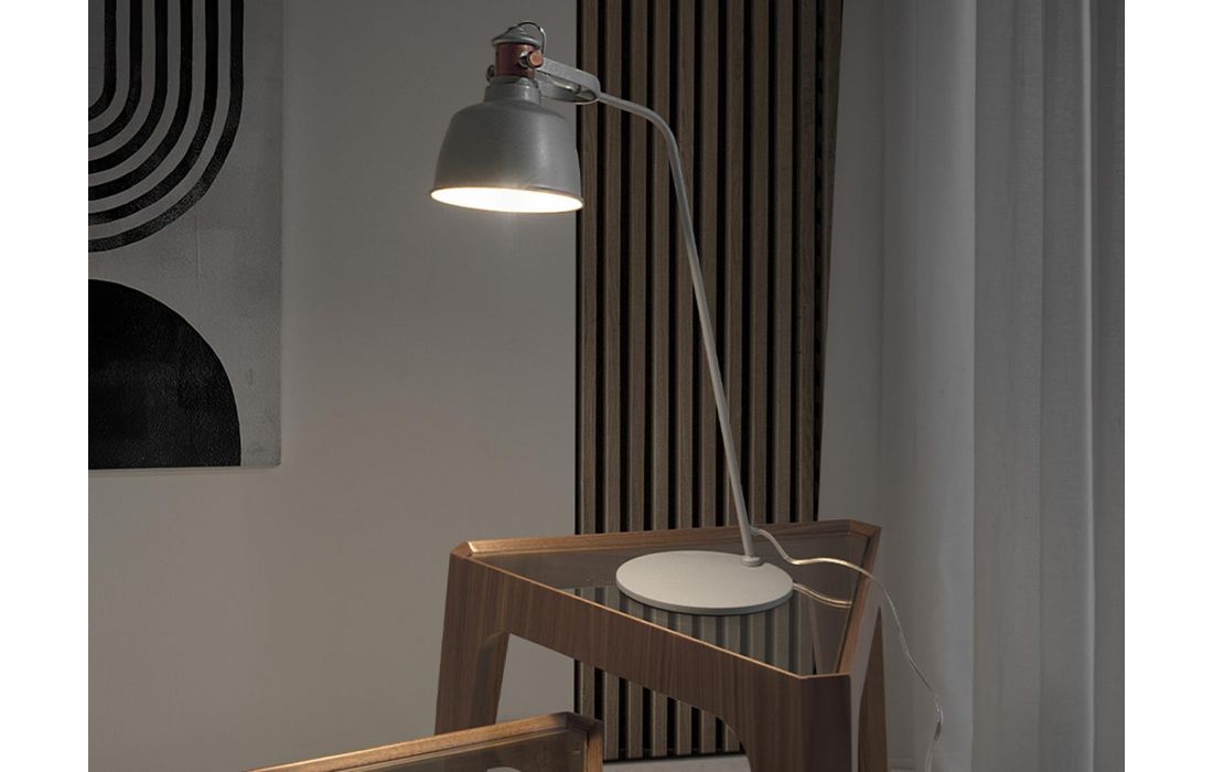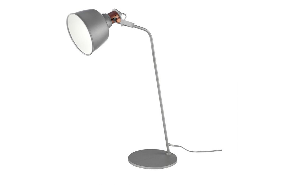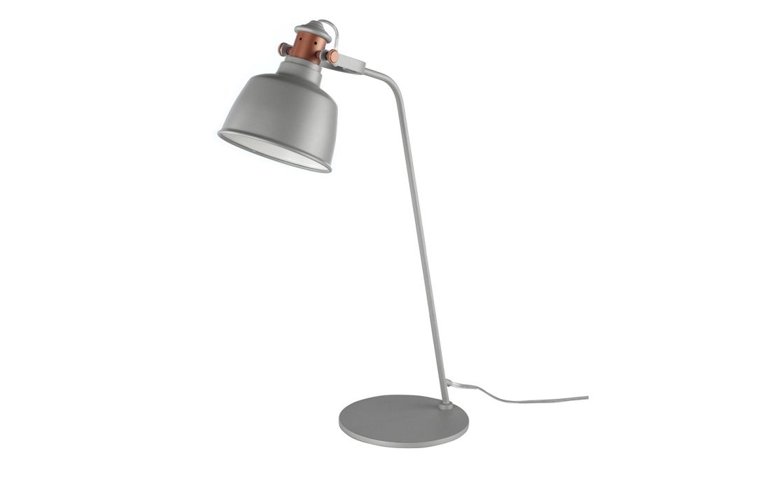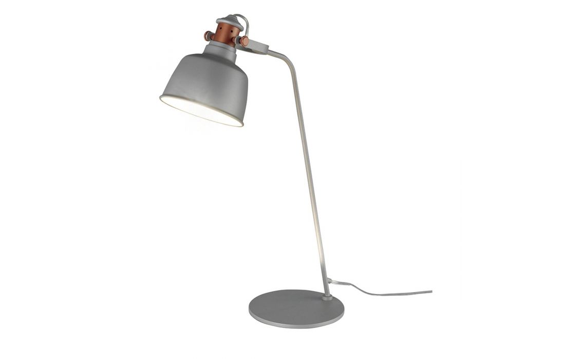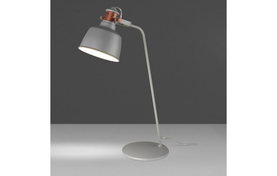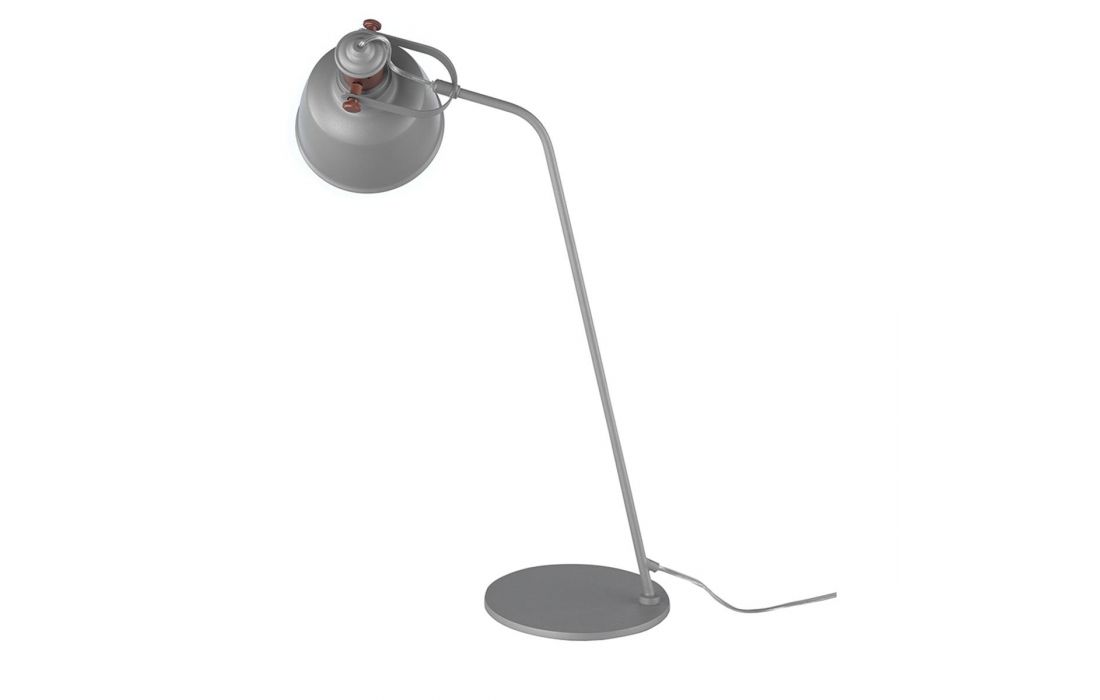 Table lamp with multidirectional shade in gray epoxy painted stainless steel and bronze accents