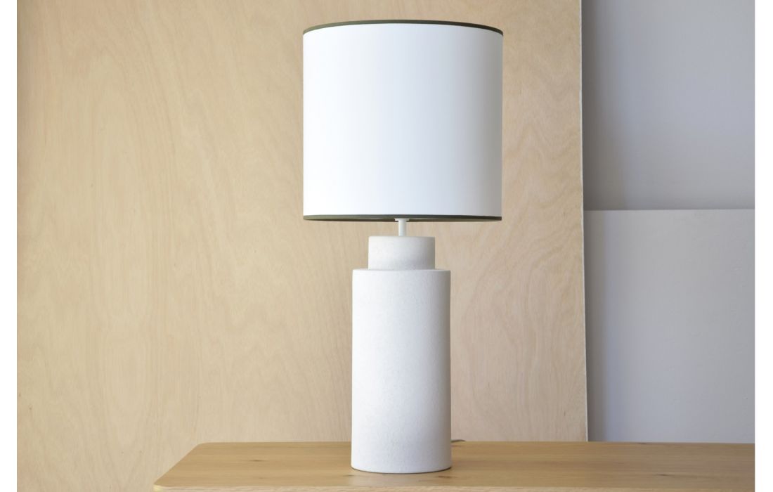 Table lamp with cylindrical shape made of ceramic in off-white color