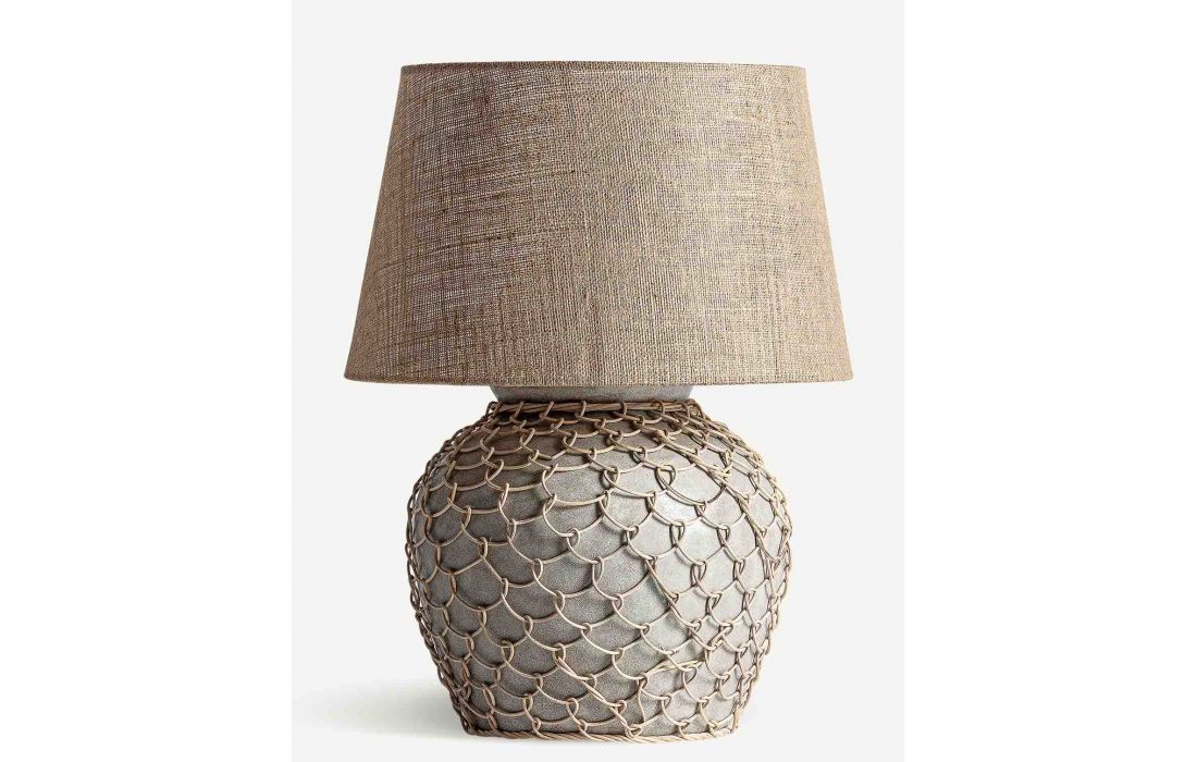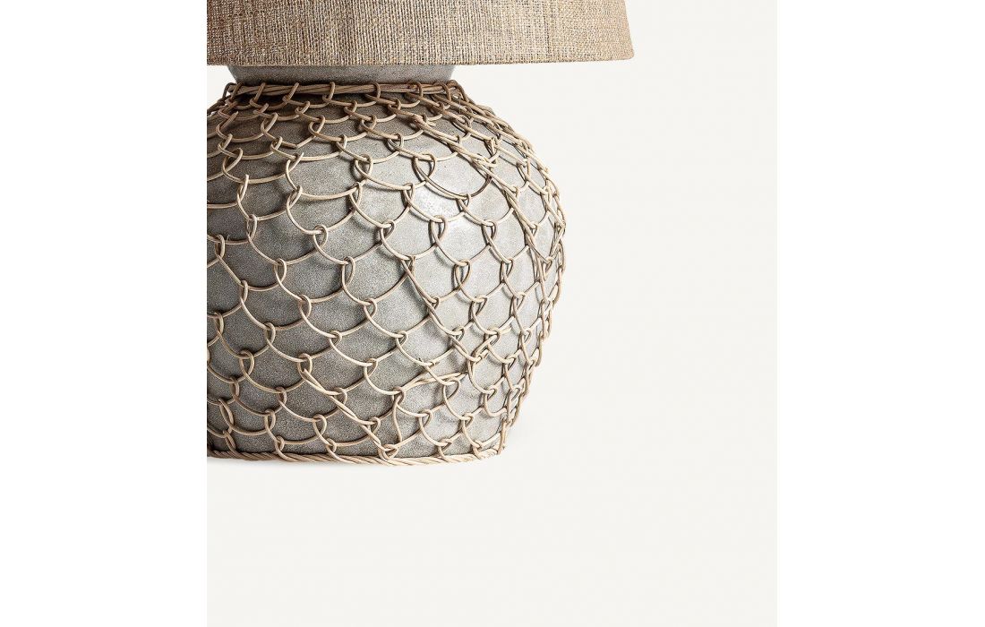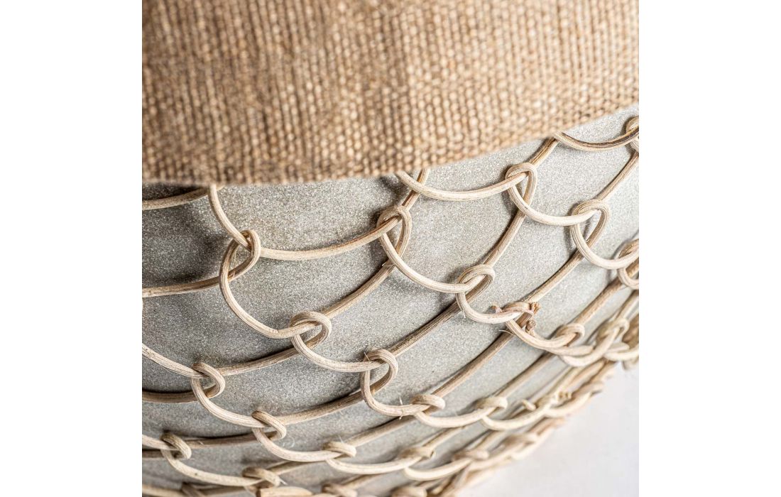 Contemporary style table lamp made of cement and rattan with cream-colored jute shade