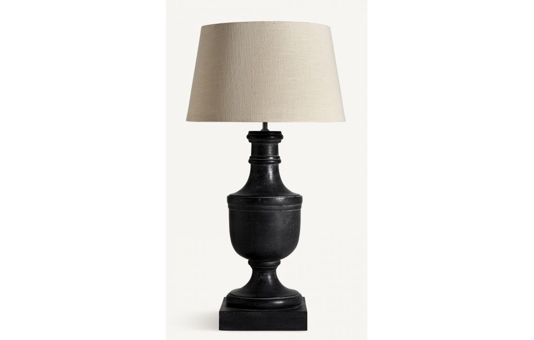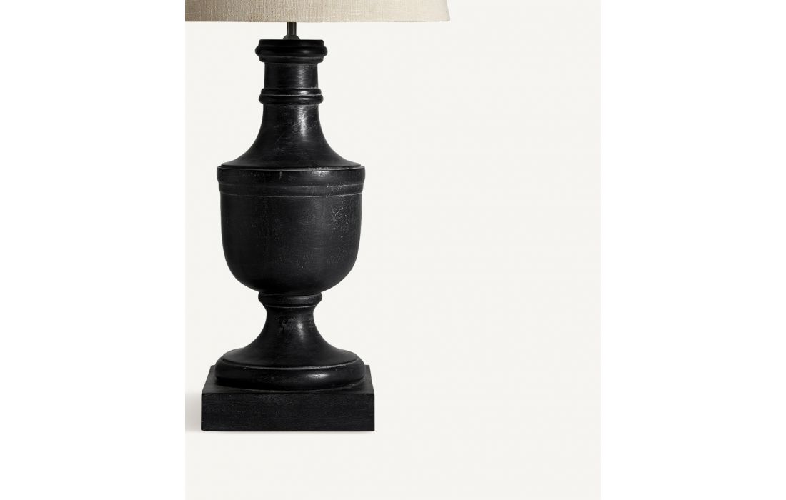 Provençal style table lamp made of black mango wood with cotton fabric shade