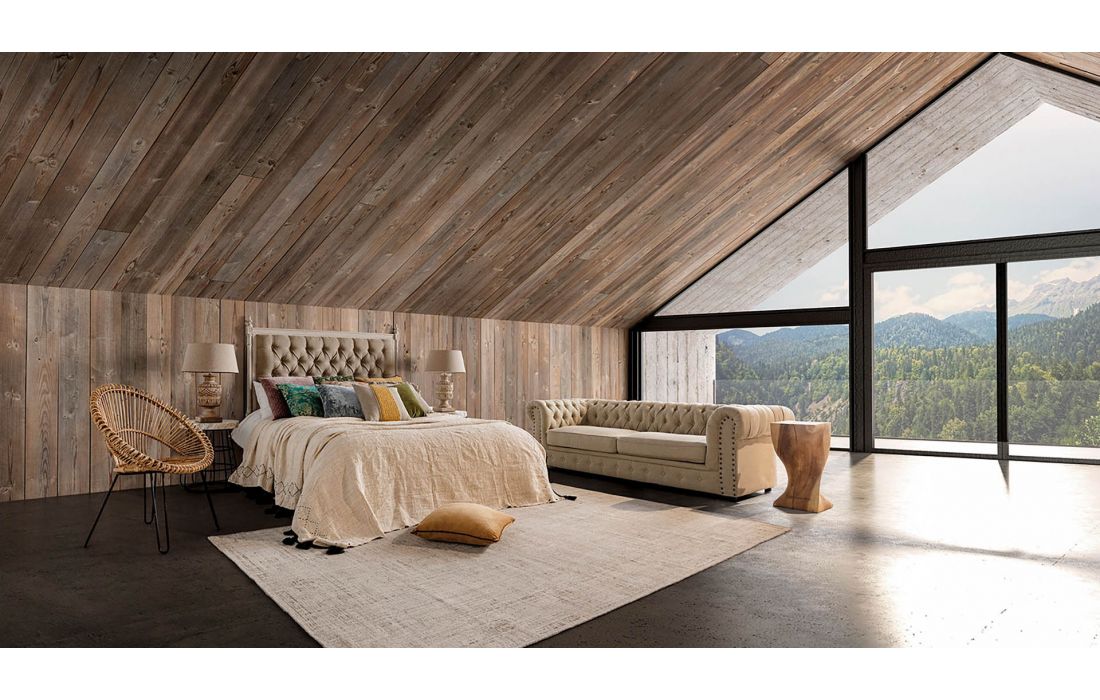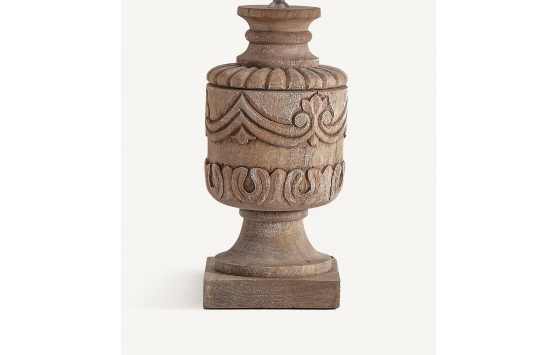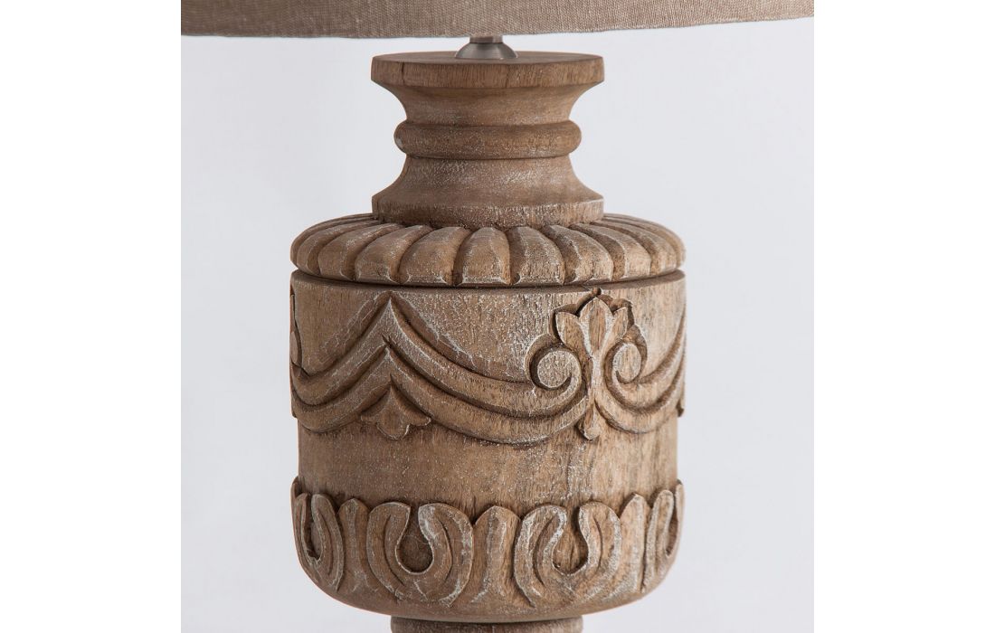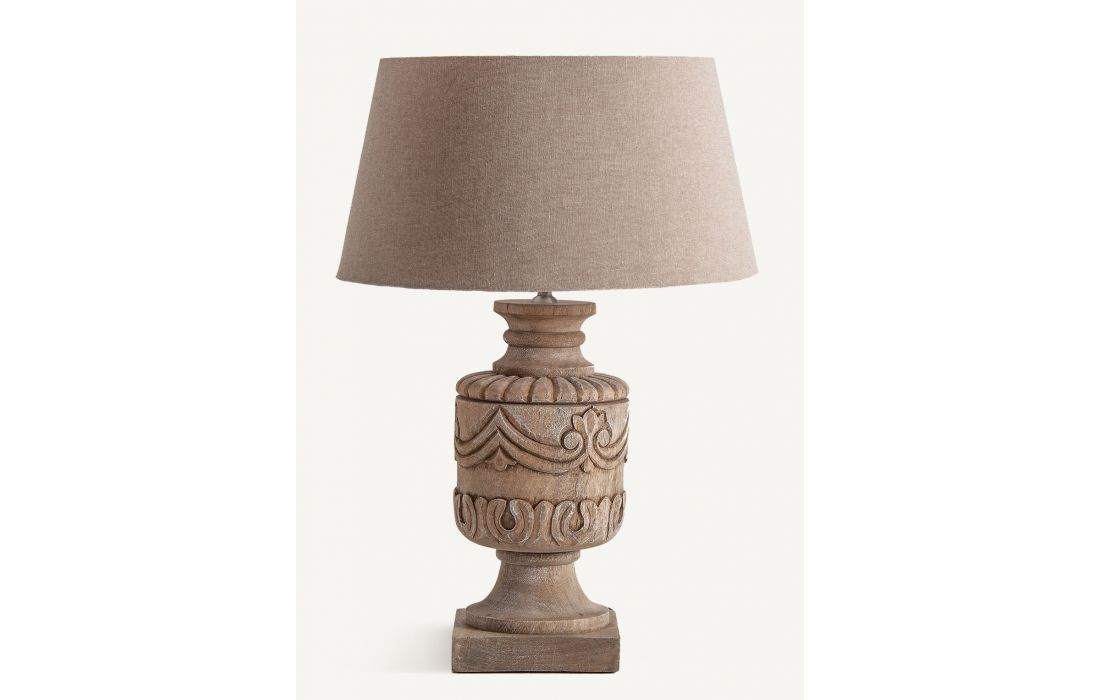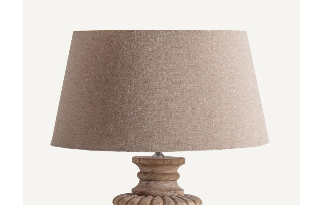 Provençal style table lamp made of mango wood with cotton fabric shade