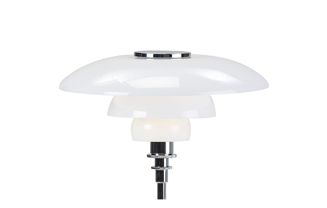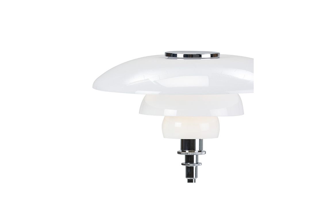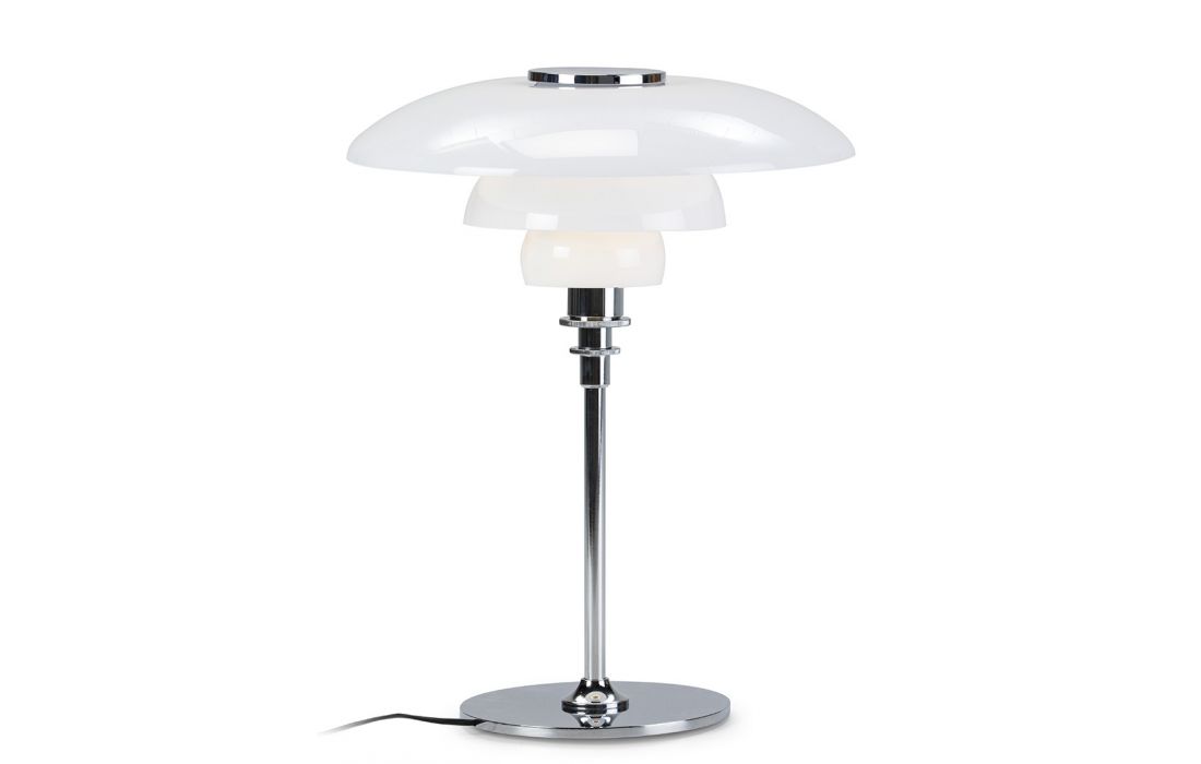 Table lamp in chrome metal and white glass