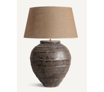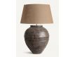 Vintage-style table lamp made of ceramic and jute in shades of brown