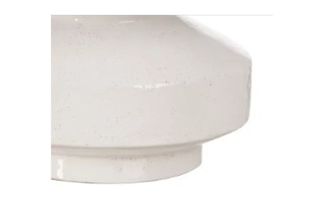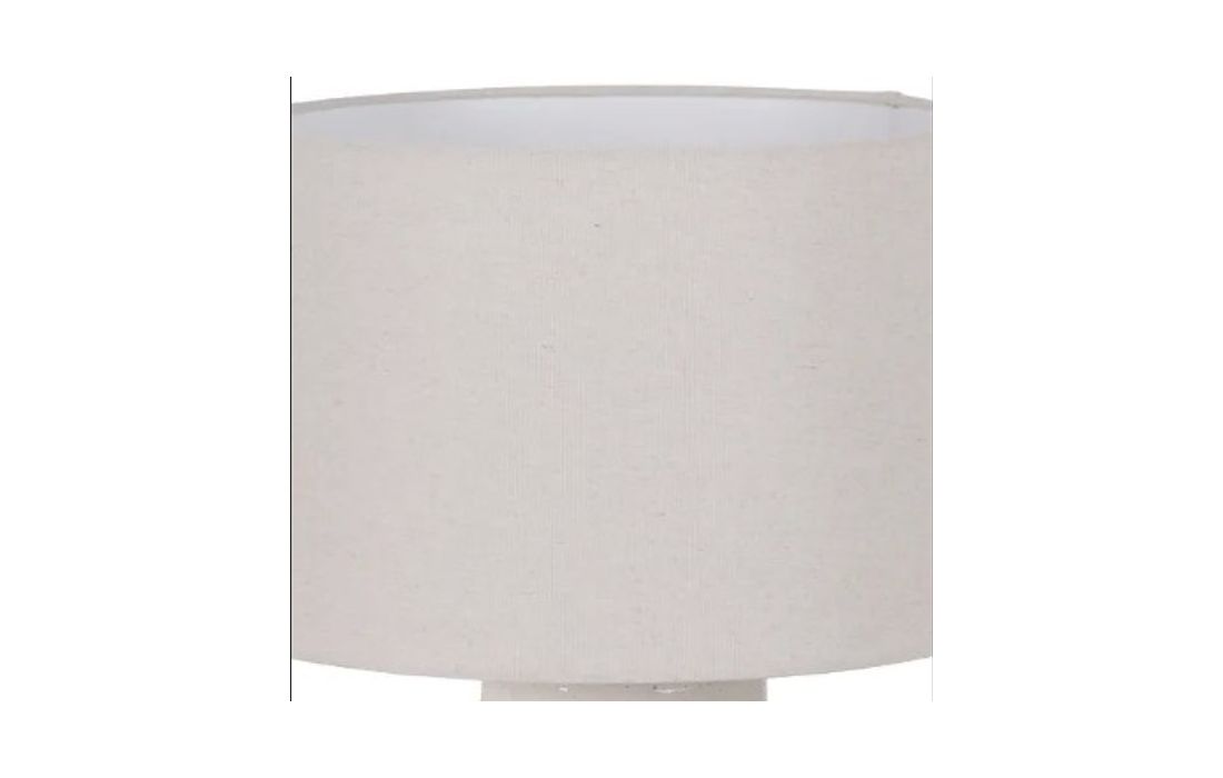 Lampshade with terracotta base and linen fabric shade.