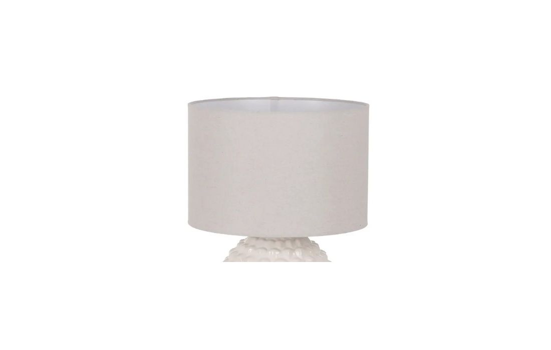 Lampshade with ceramic base and linen fabric shade.