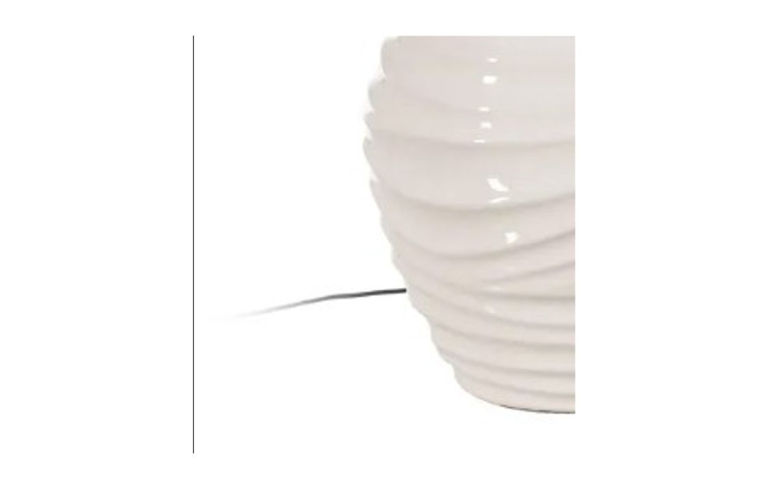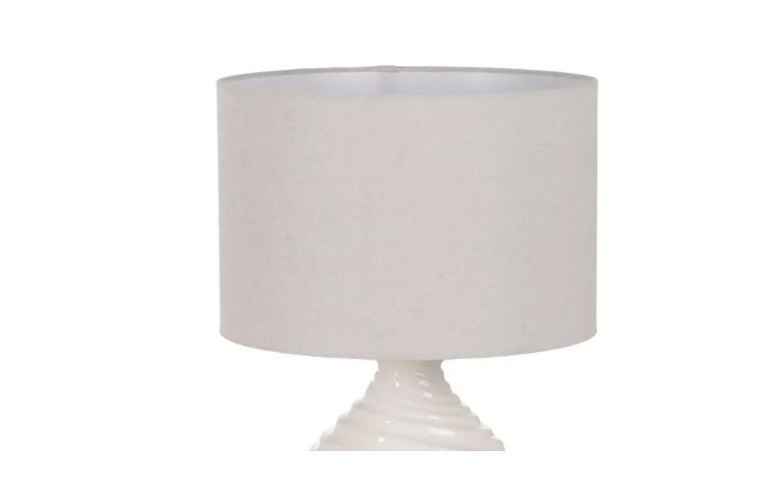 Lampshade with ceramic base and linen fabric shade.