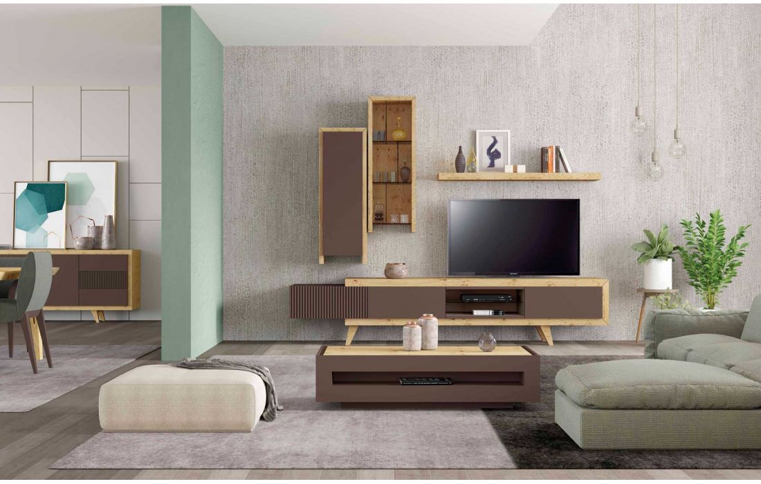 Tv Base w/ 3 Doors "Push and Pull" Opening