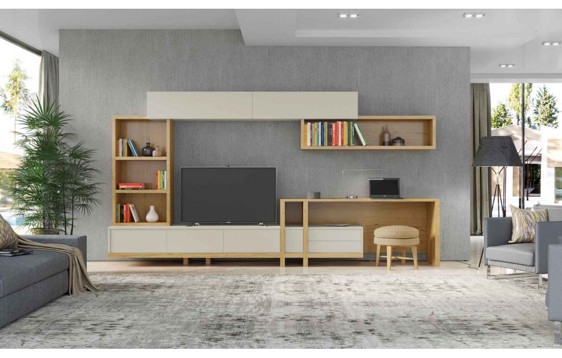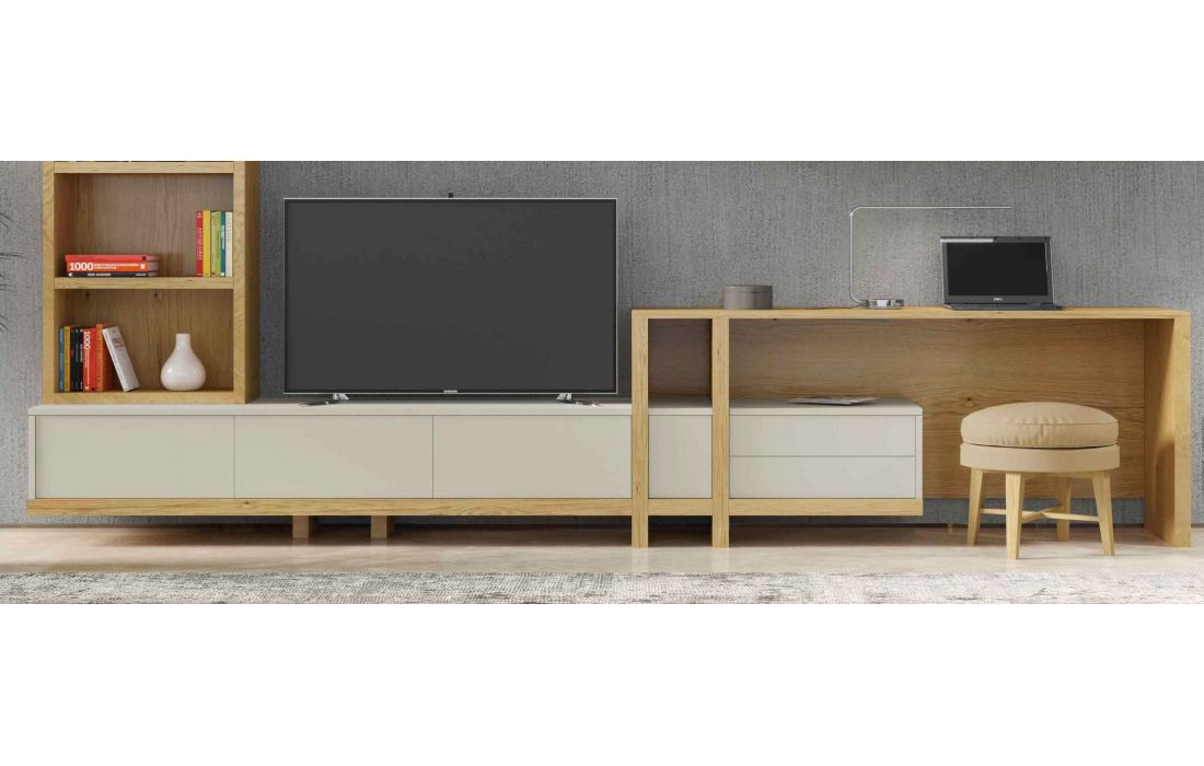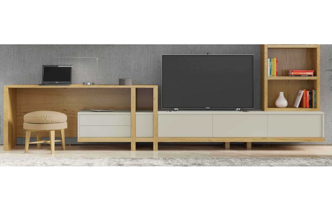 Tv Base w/ 4 Doors and 2 Drawers "Push and Pull" Opening w/ Desk.