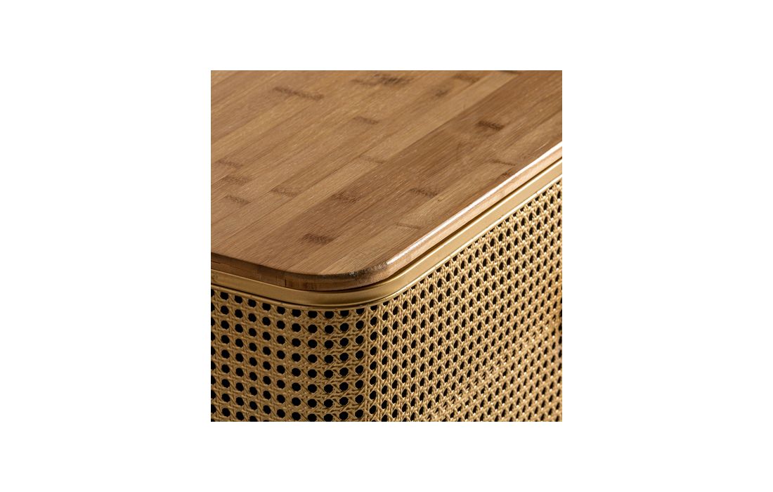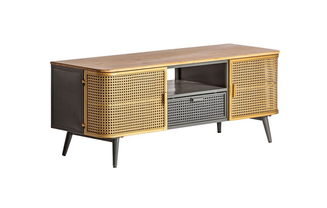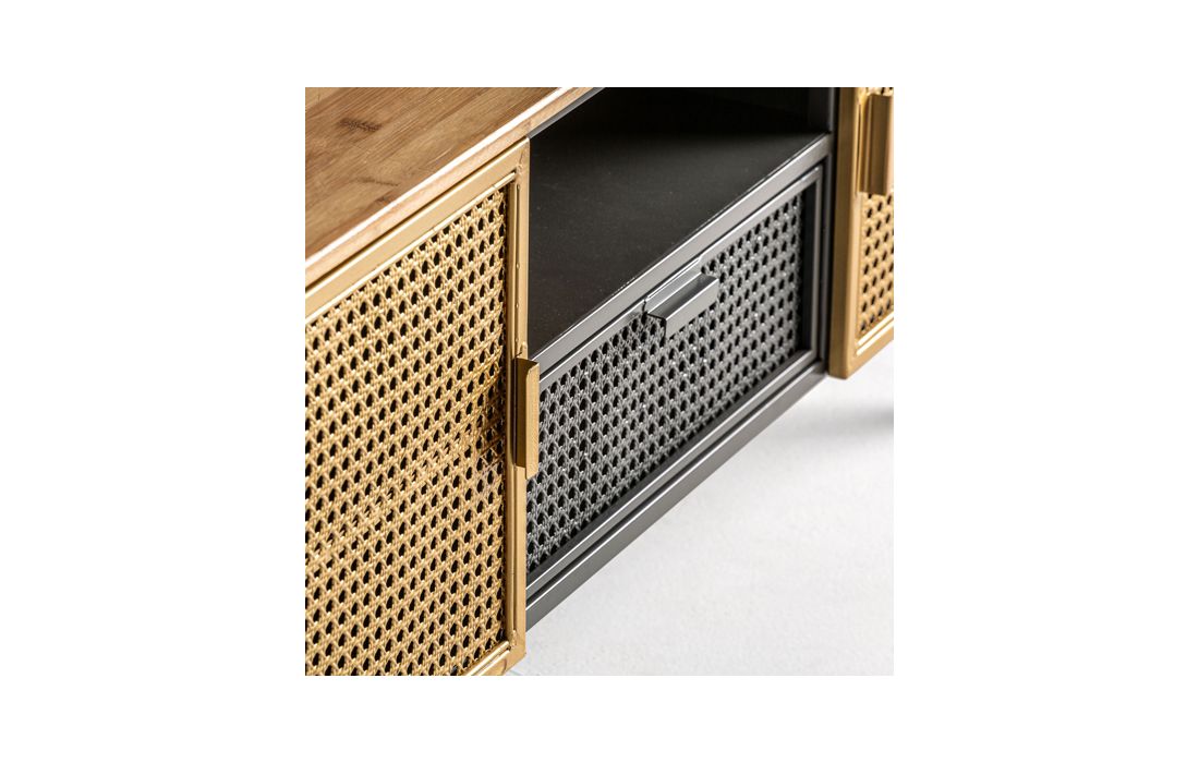 Tv base with 2 doors and 1 drawers in iron and bambu, color gray and gold