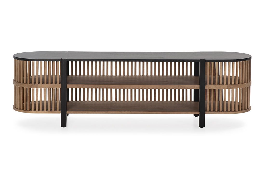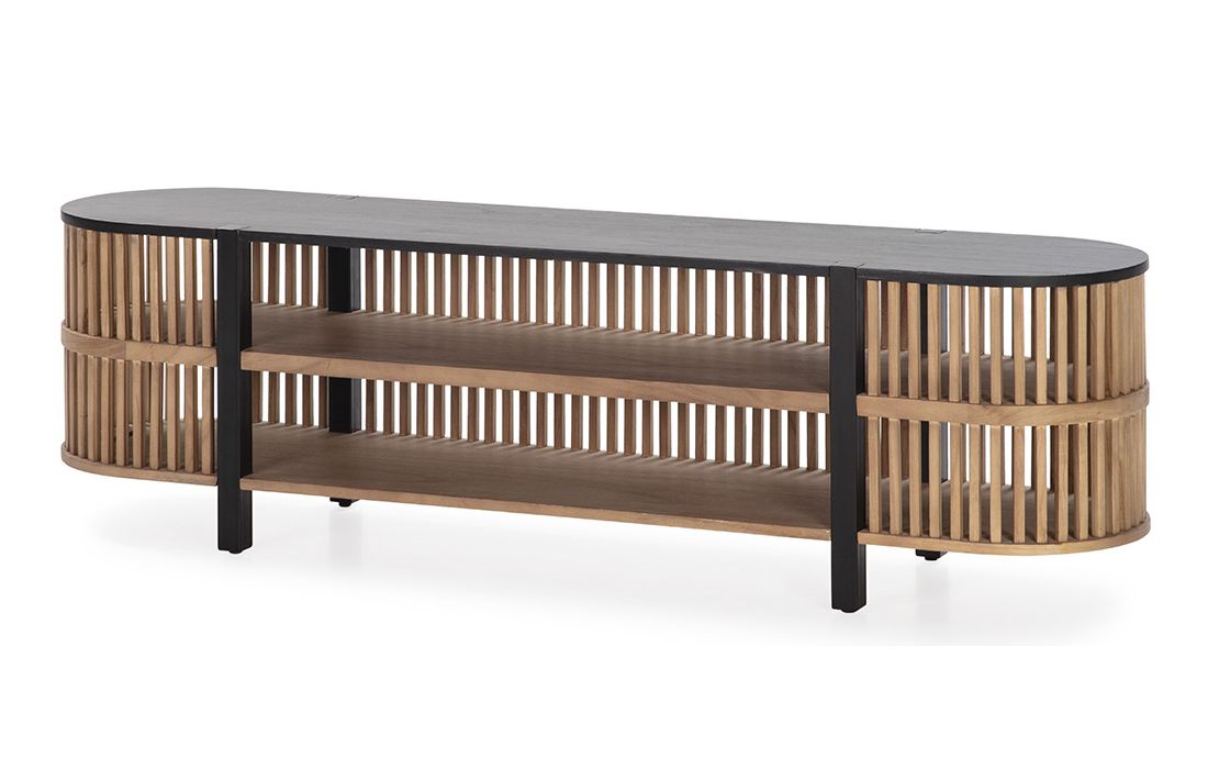 Wooden TV base and black metal feet