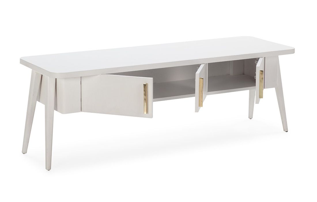 3-door TV base in white wood