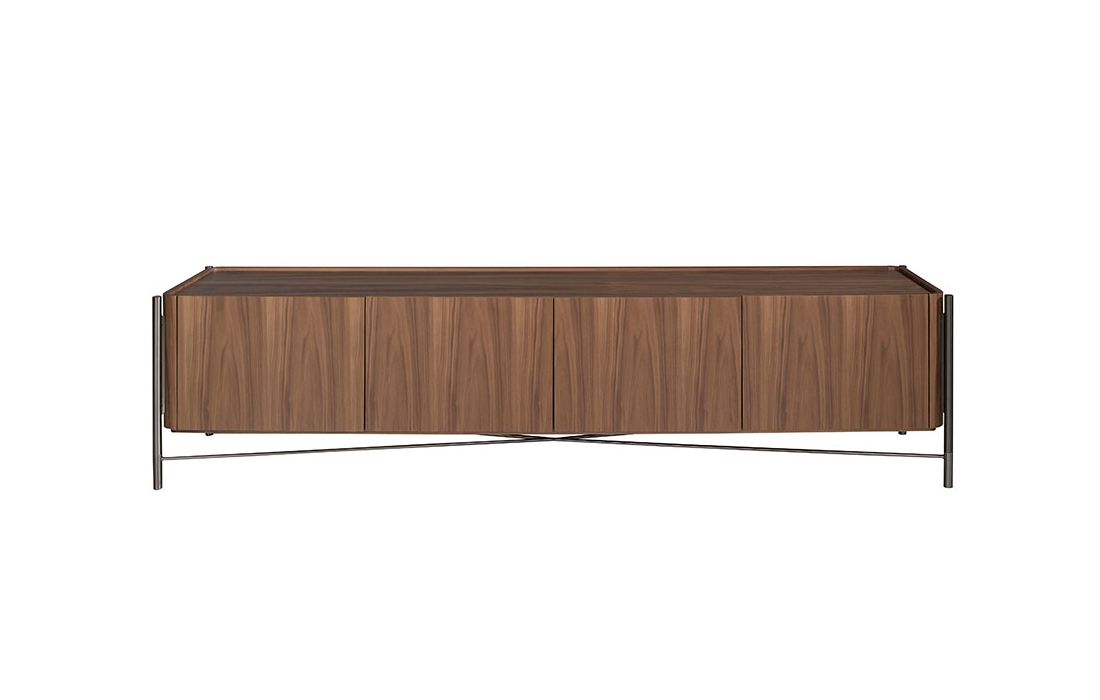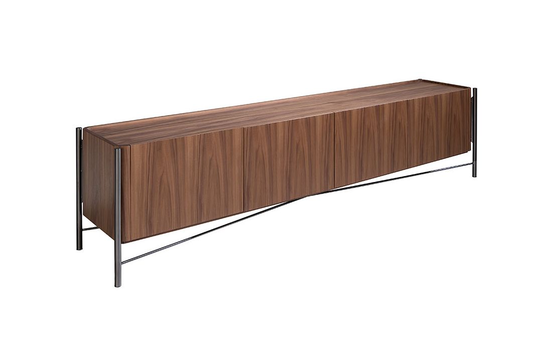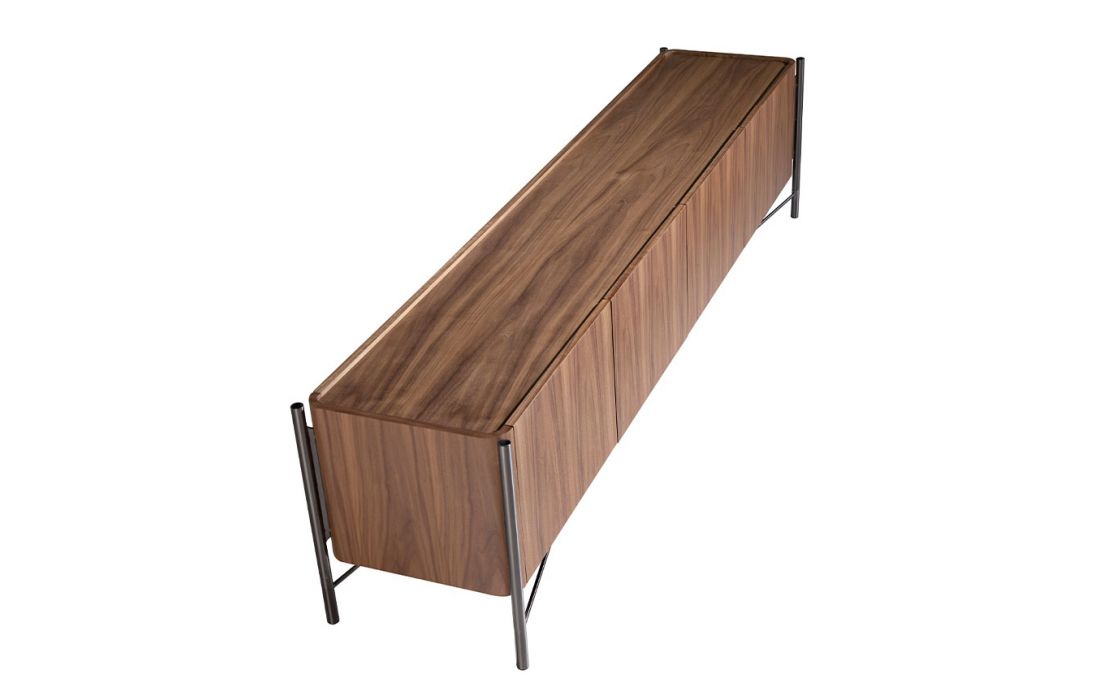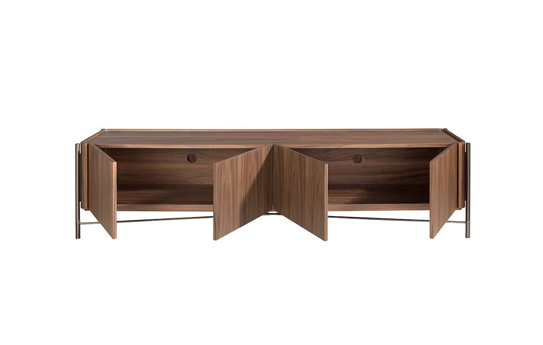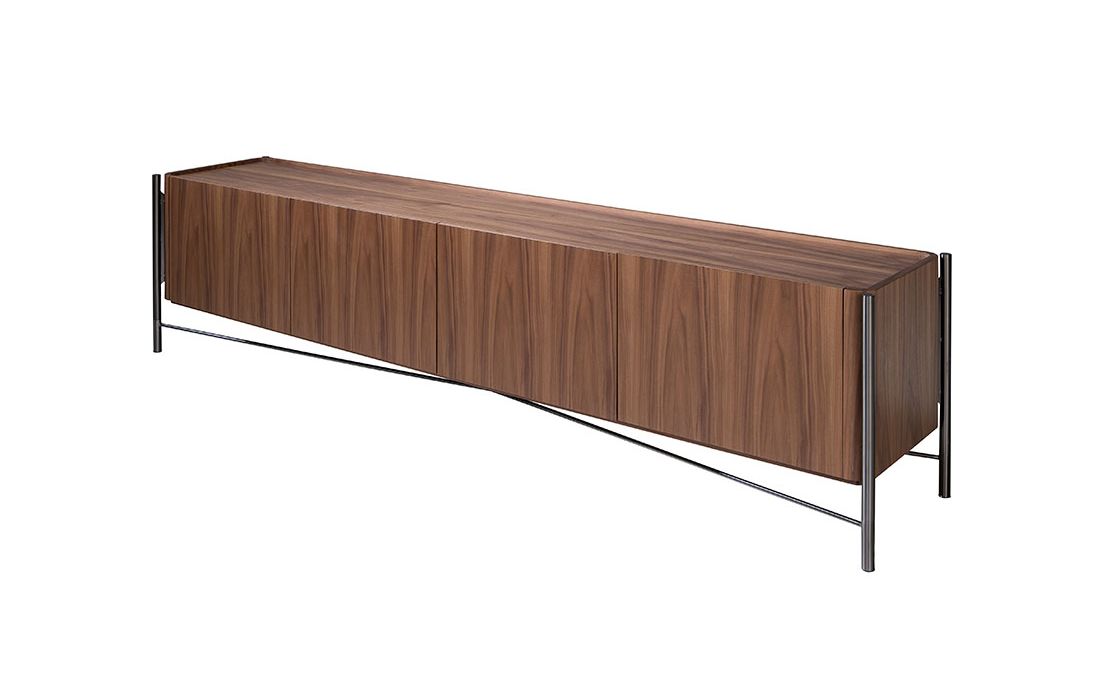 Walnut veneered TV stand with four doors and blackened stainless steel foot frameRecipient :