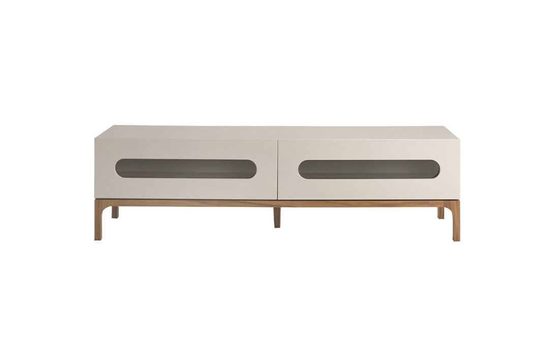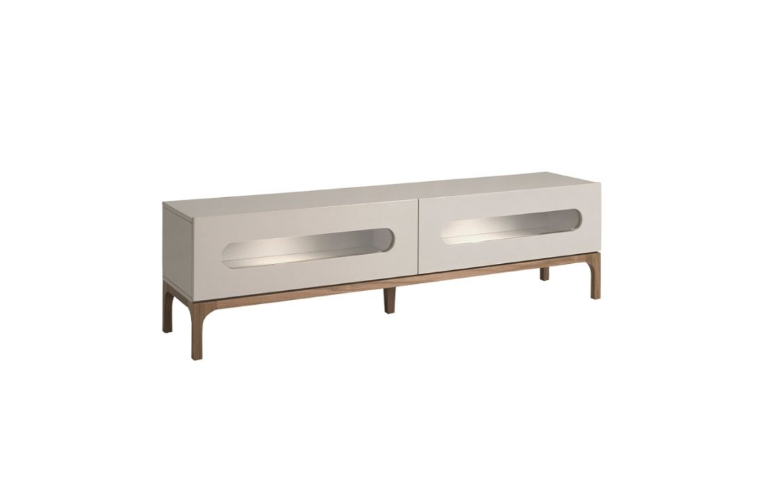 Modern TV base with MDF structure and MDF legs in walnut color, with internal lighting, with its glass detail it gives a touch of style and has ample storage with 2 drawersRecipient :