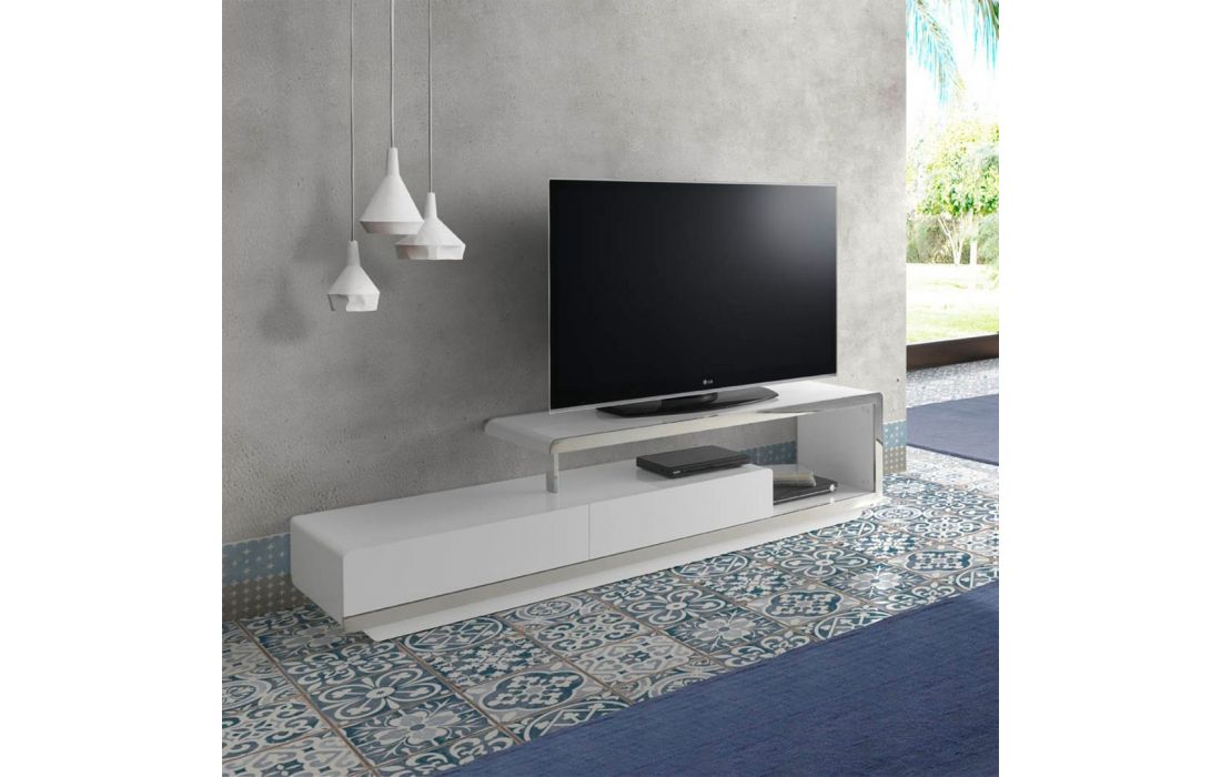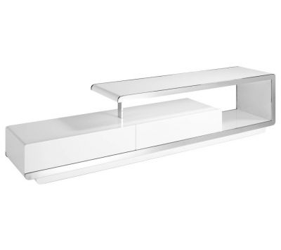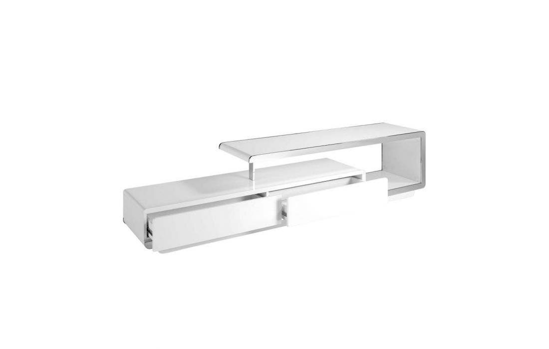 Modern design TV stand with white MDF structure and original stainless steel base and stainless steel detail with 2 drawersRecipient :