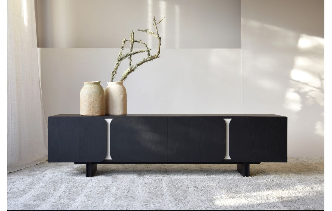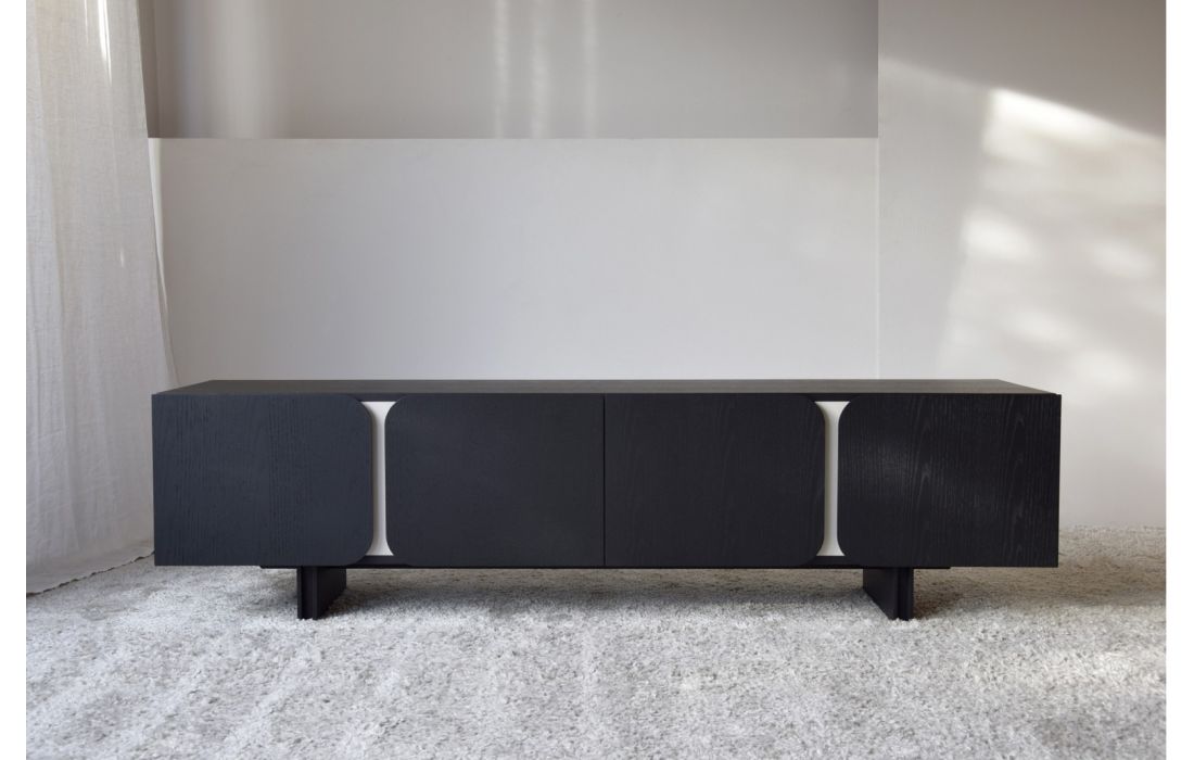 TV base with lacquer structure with 4 doors.