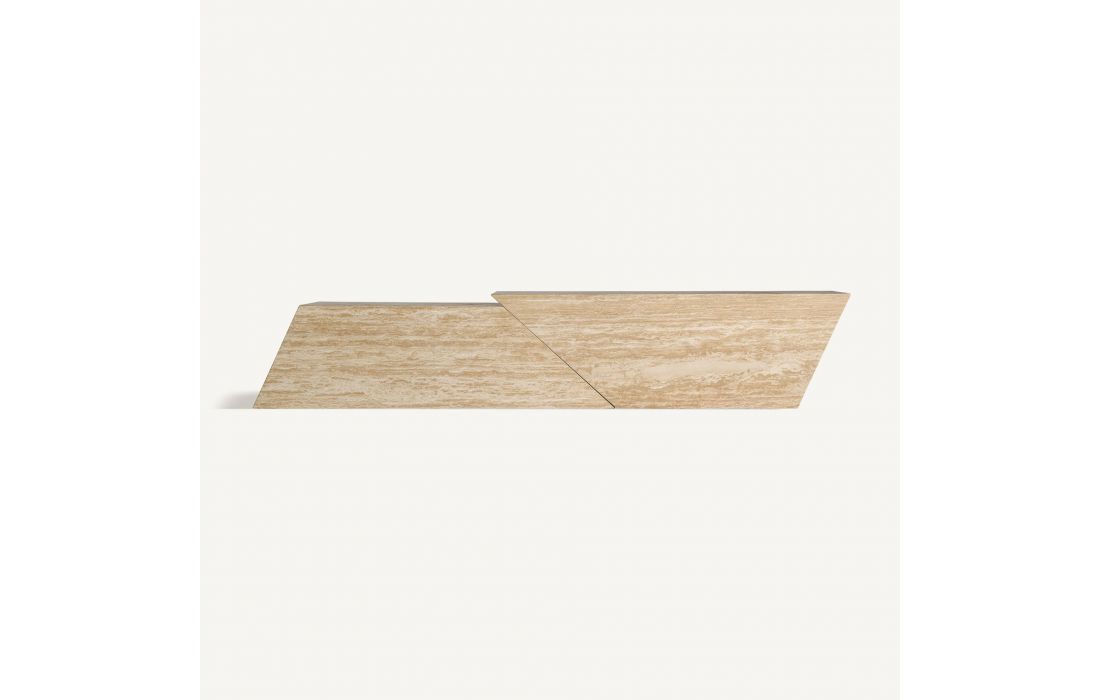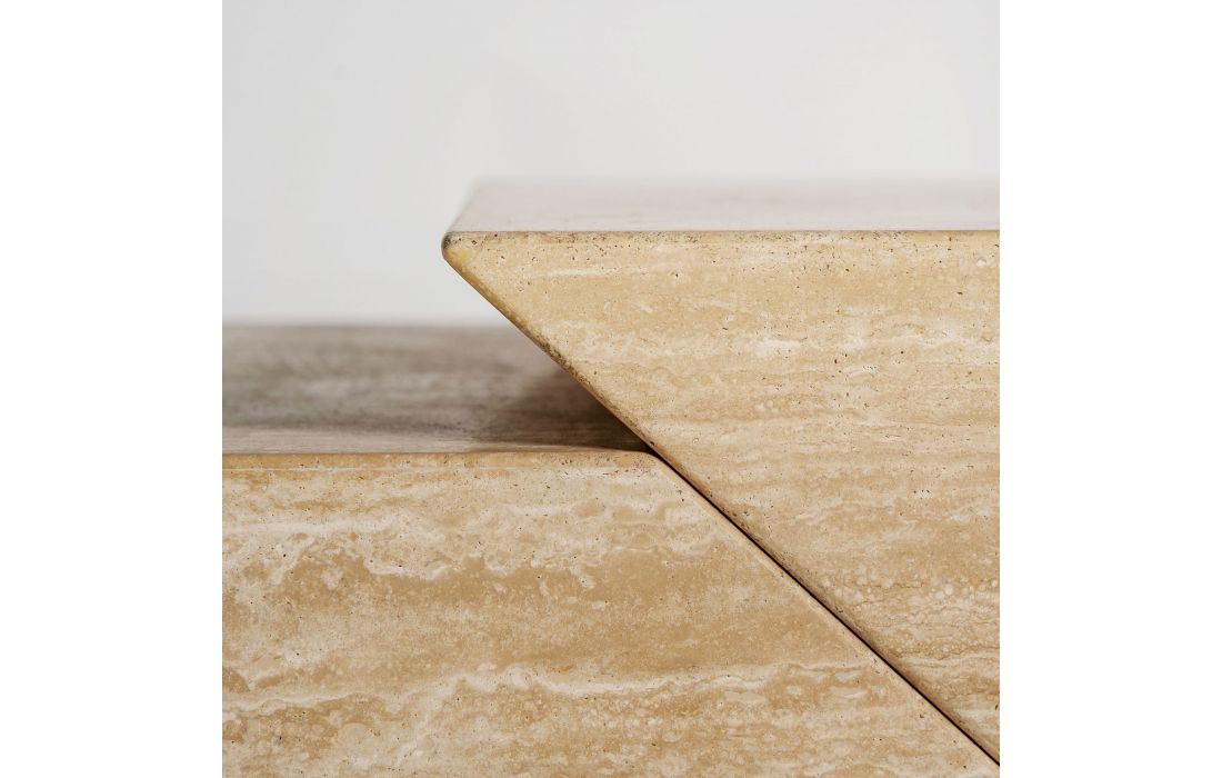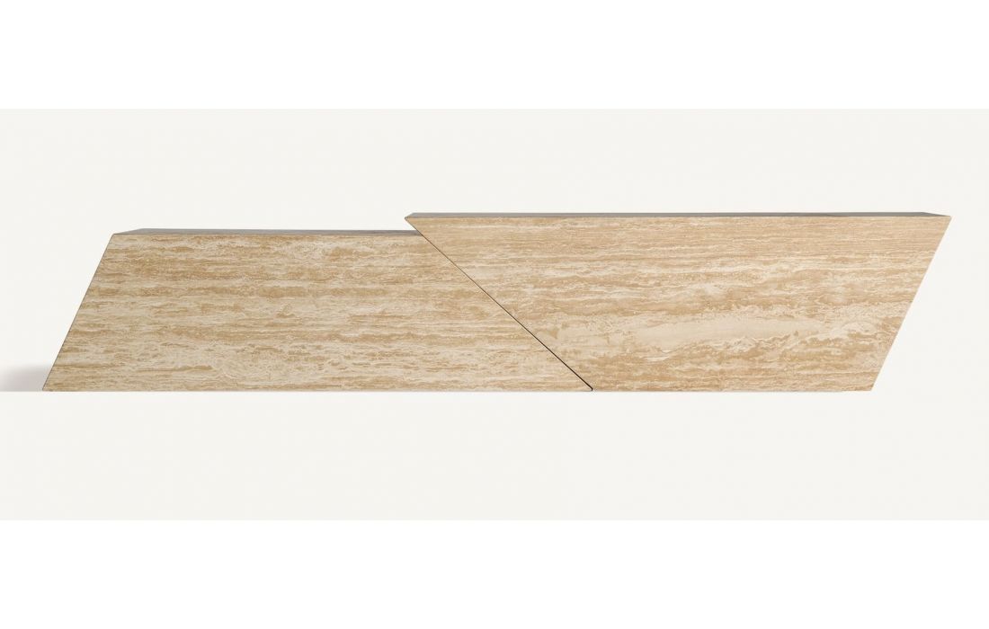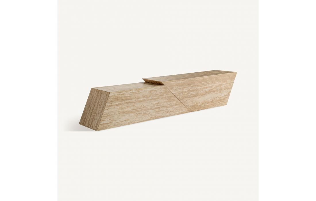 This design brings balance and style: The BASE TV THIENNES. Its light travertine structure and straight lines make it a functional piece with a sculptural aesthetic.Recipient :
