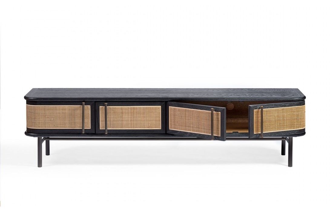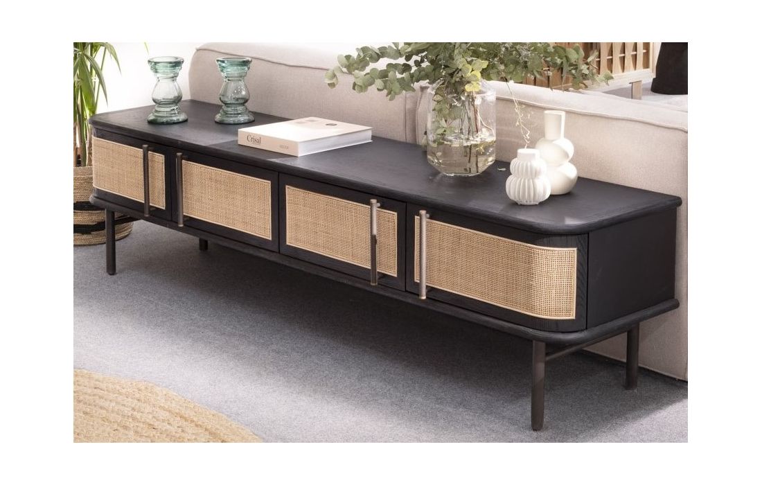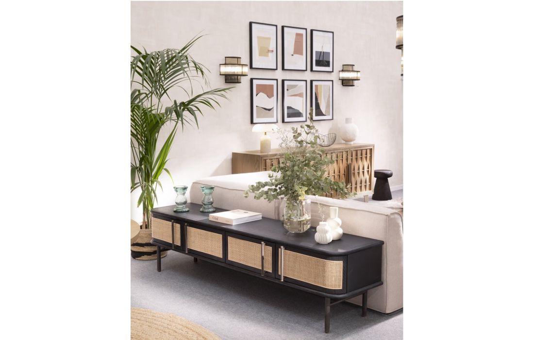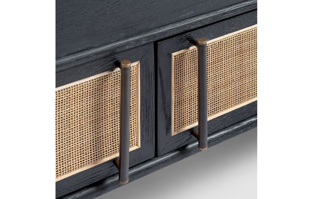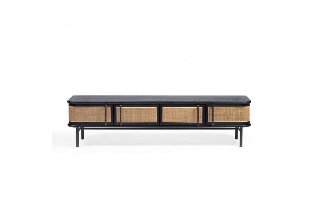 Add a touch of nostalgia to your living room with the KRON TV stand in oak, adorned with four wooden doors and elegant natural wicker panels.This retro design combines the robustness of oak with the lightness and texture of rattan, creating a perfect balance between classic and contemporary.