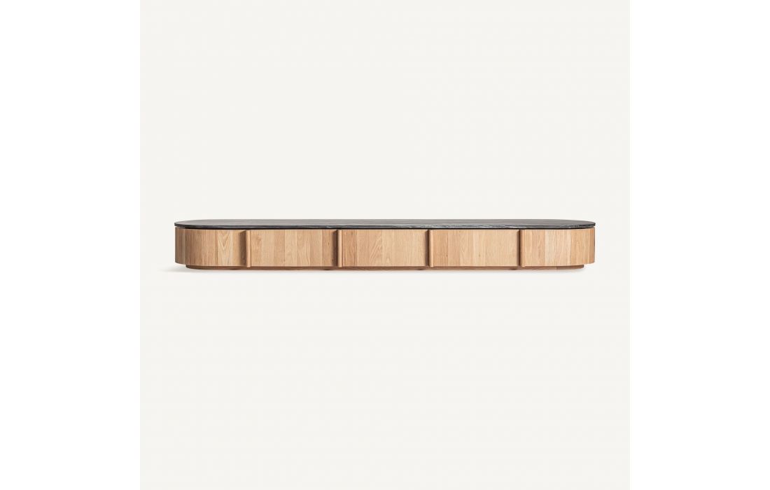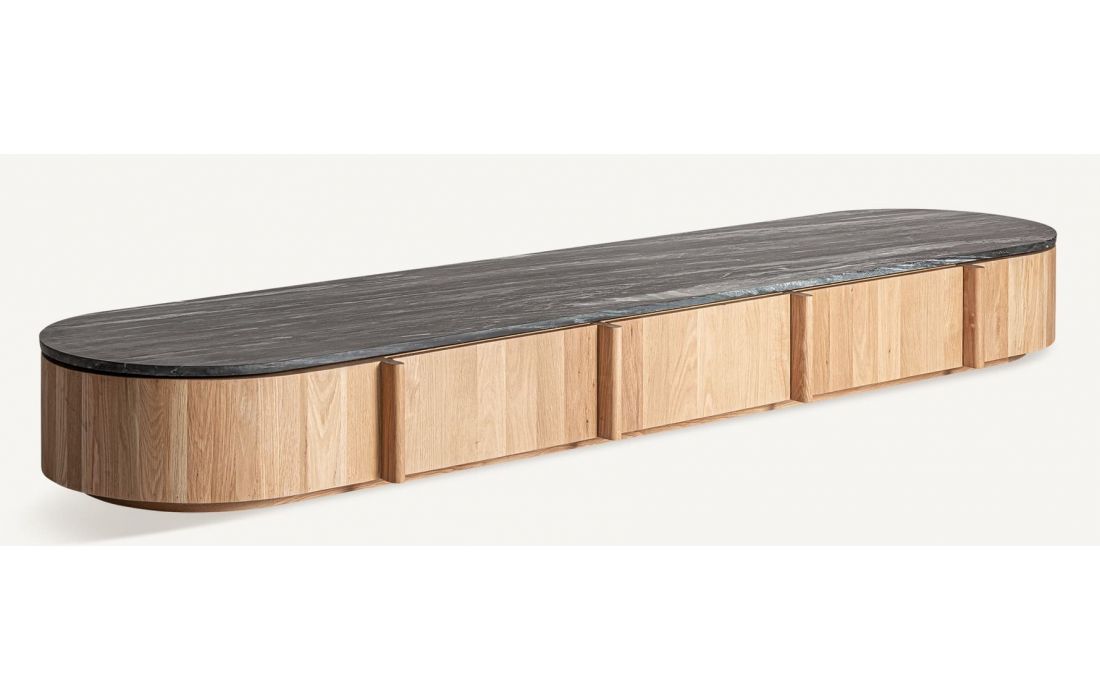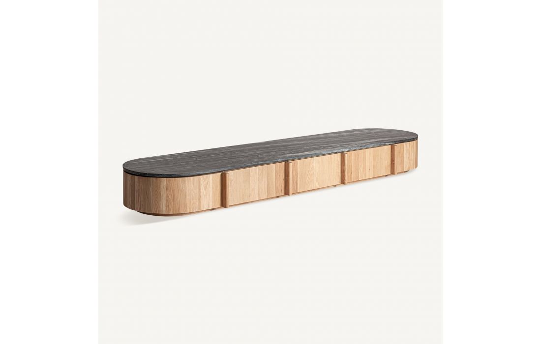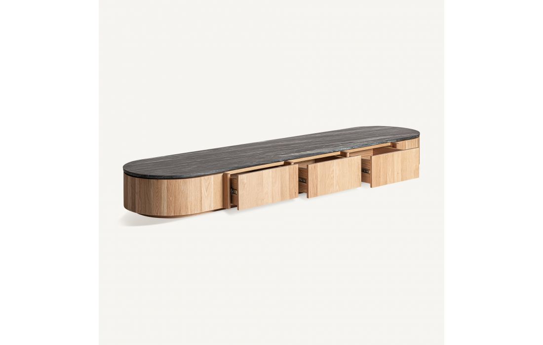 This contemporary-style TV stand, crafted from light brown oak wood and combined with black marble, adds a modern and sophisticated touch to your living room.Recipient :