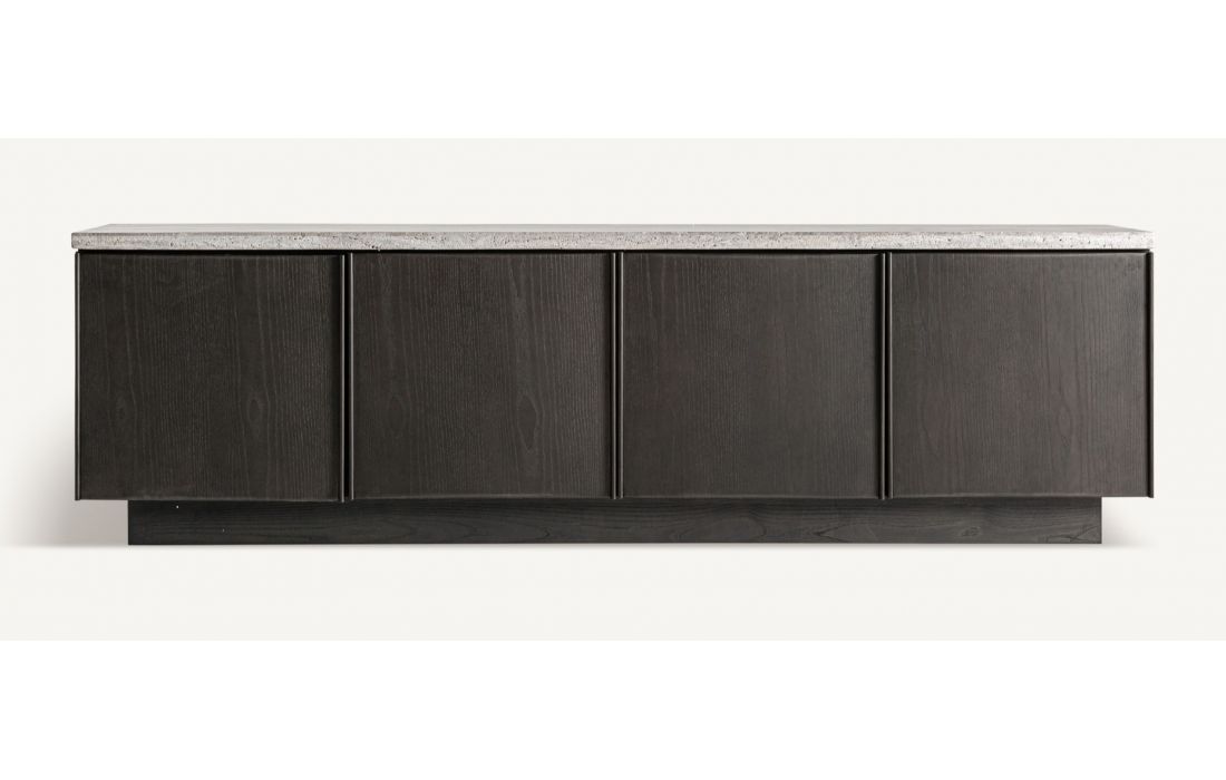 This contemporary-style TV stand combines the elegance of travertine with the sophistication of ash wood in a brown tone.The contrast between the materials creates a modern and balanced look, ideal for contemporary living rooms.