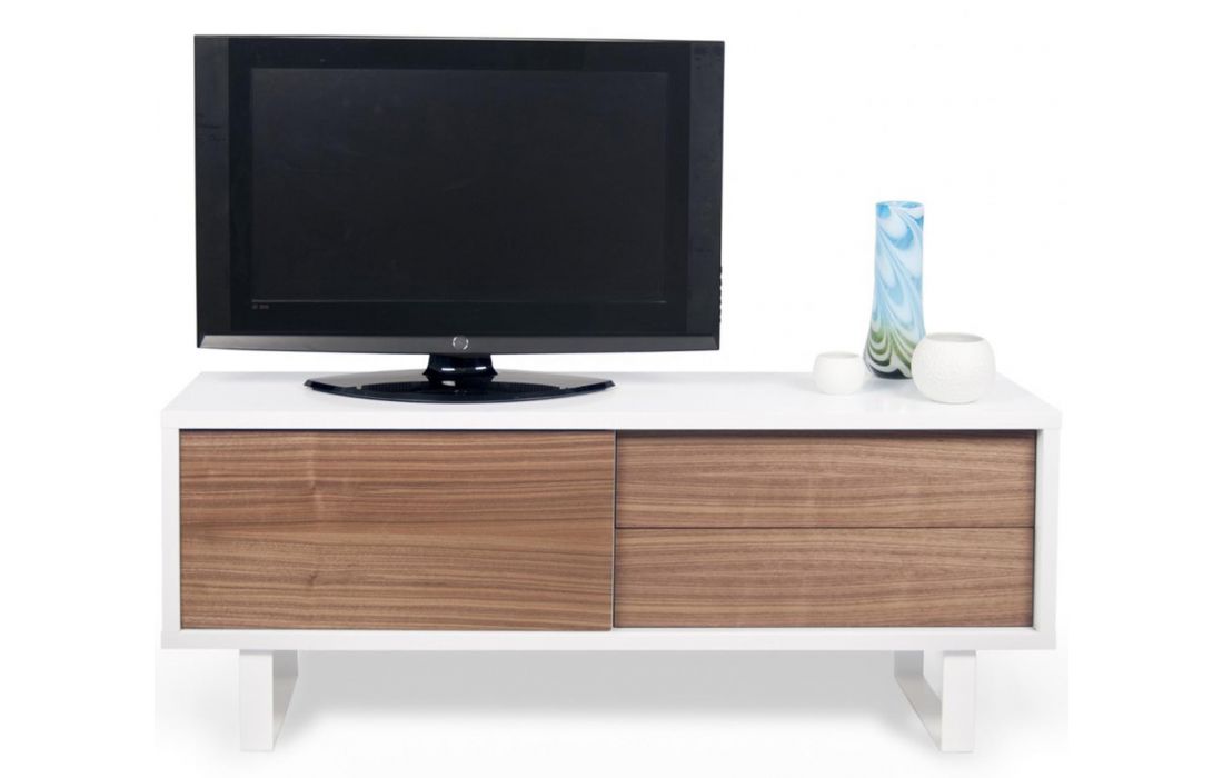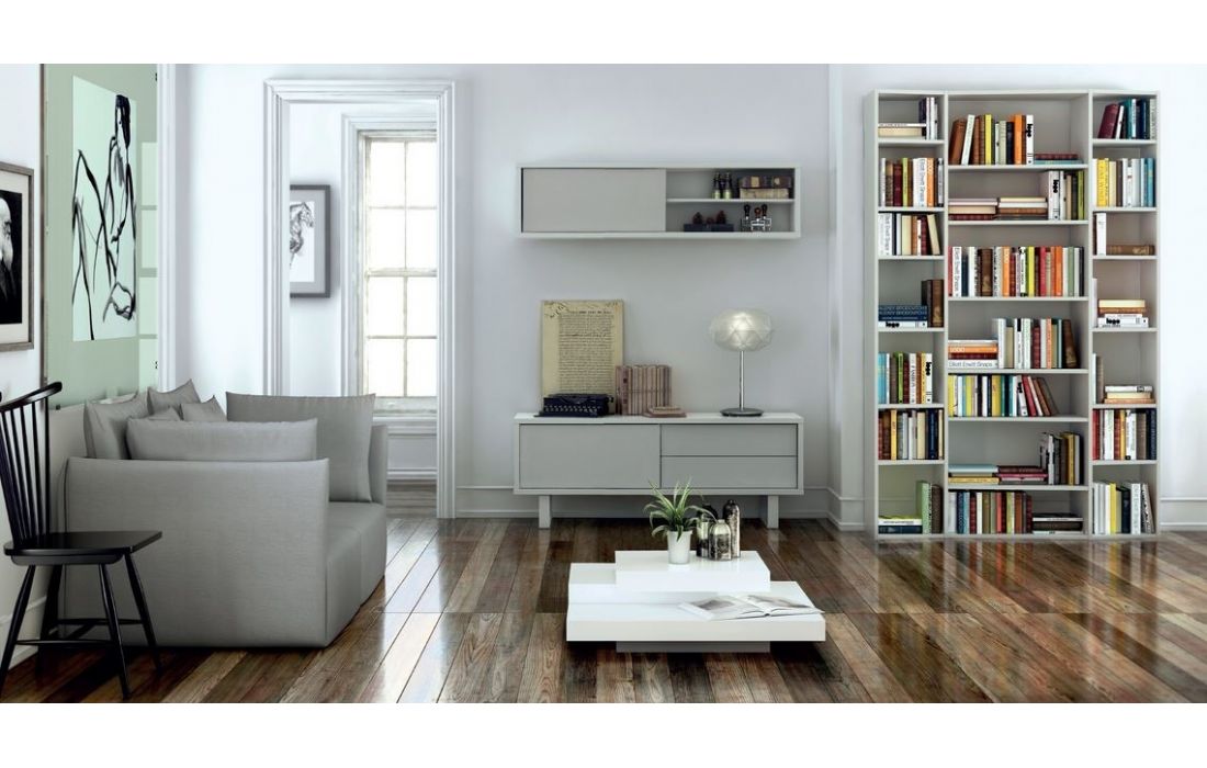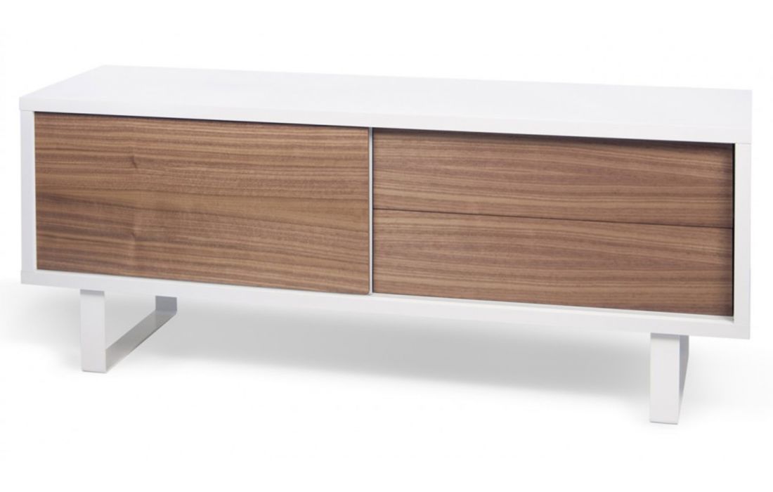 The TV base can put up on the wall or placed on the floor, the piece features a modern style combined with minimalistic design. Its sliding doors allow you to choose which part that is accessible. The contrasting finishes fit perfectly to any type of decoration.