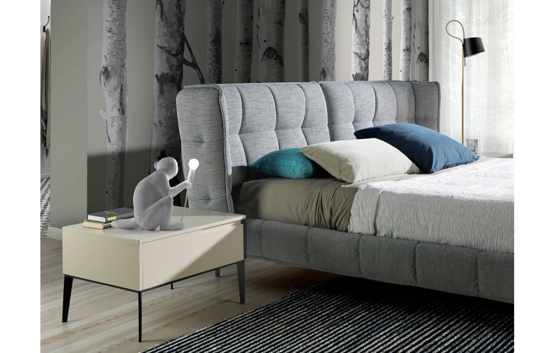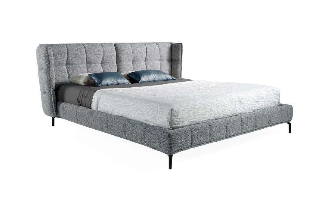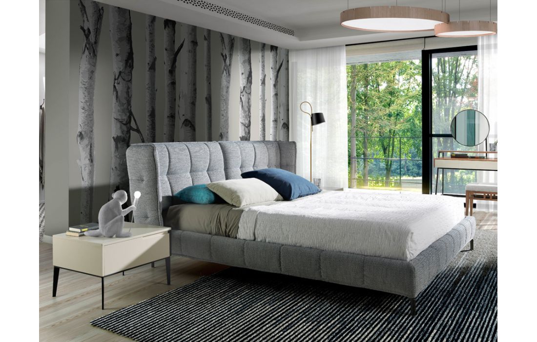 Bed upholstered in fabric for 180 x 200 mattress with black metal feets.