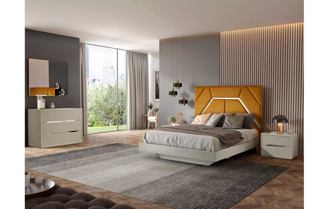 Finish just like the picture: Matt beige lacquer. Bed upholstery: Paris