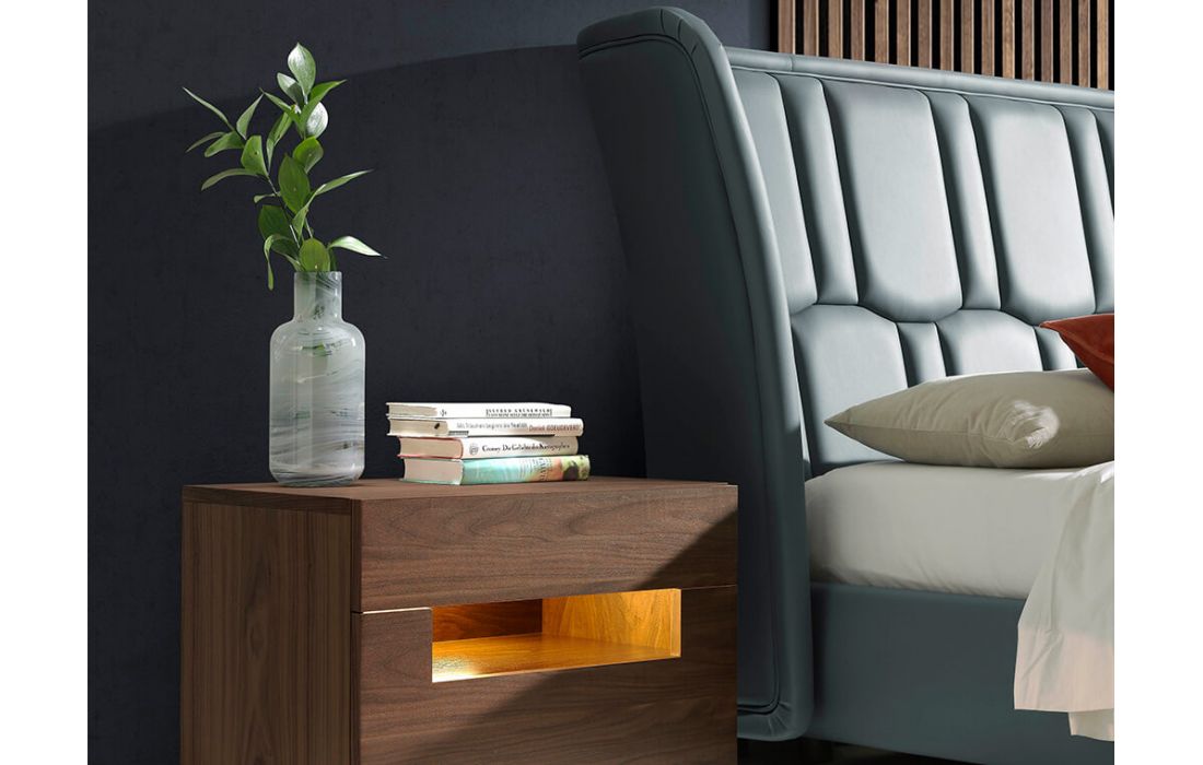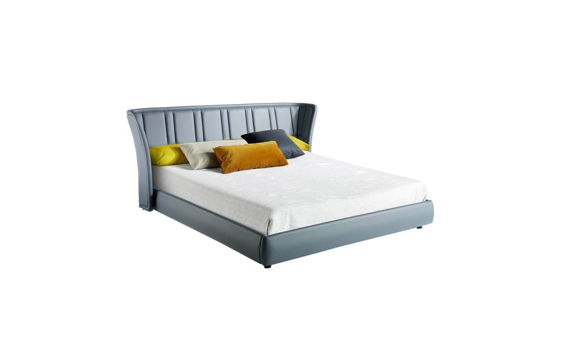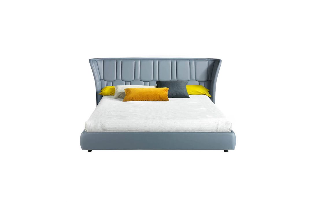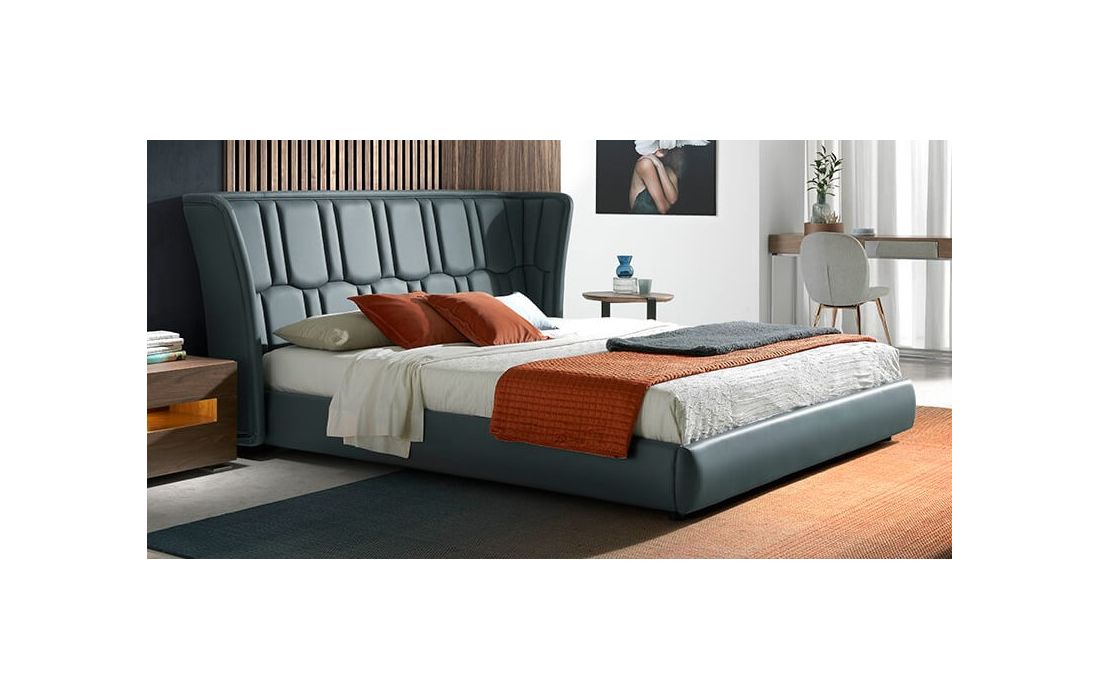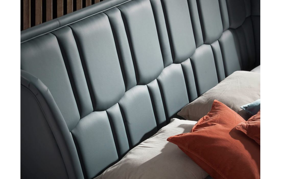 Double bed upholstered in synthetic leather.