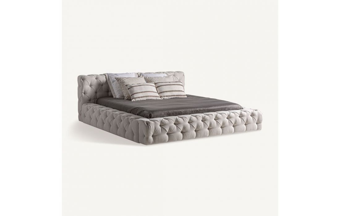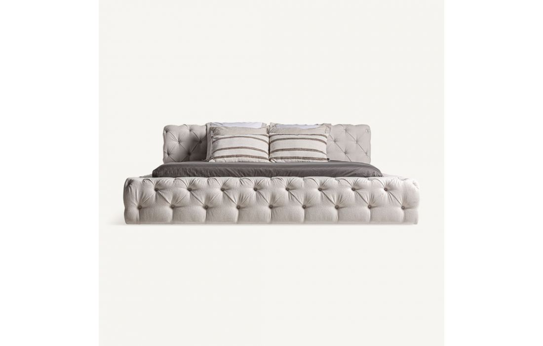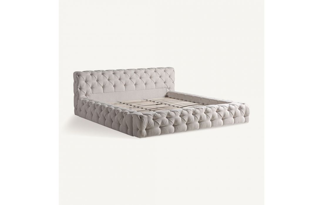 An exquisite bed with tufted fabric on the headboard and bed frame, and pine wood frameRecipient :