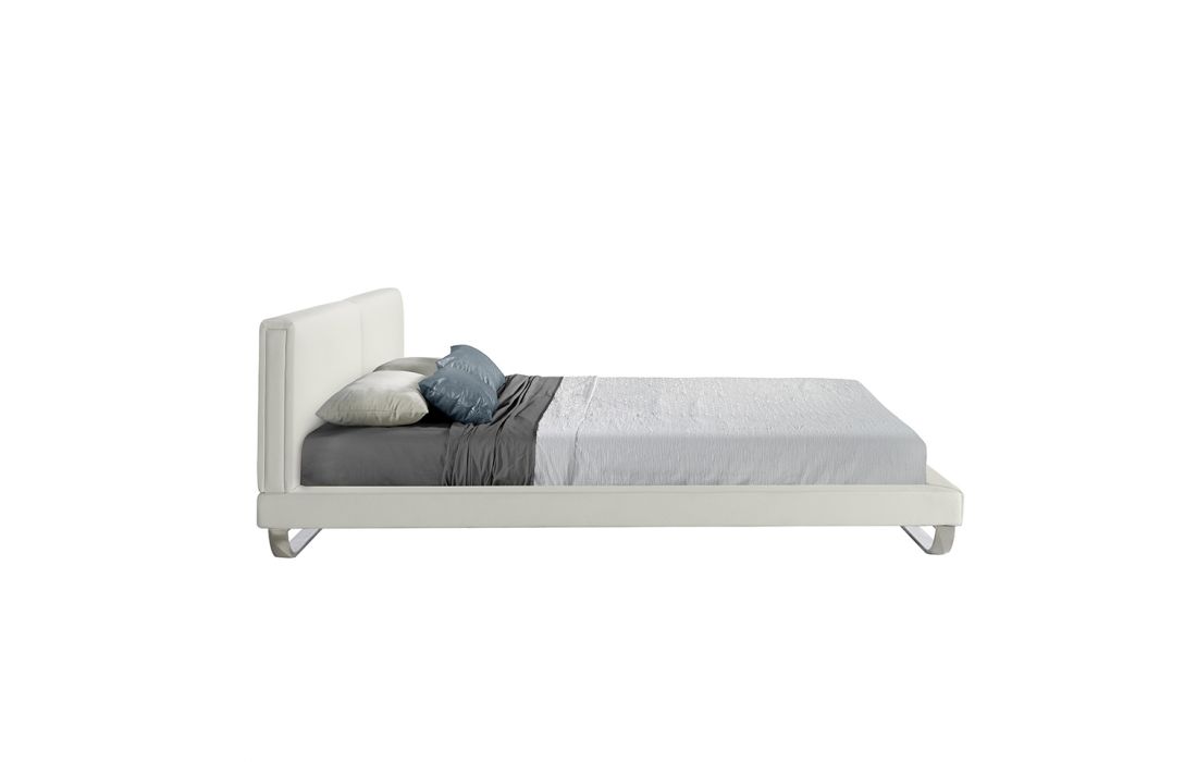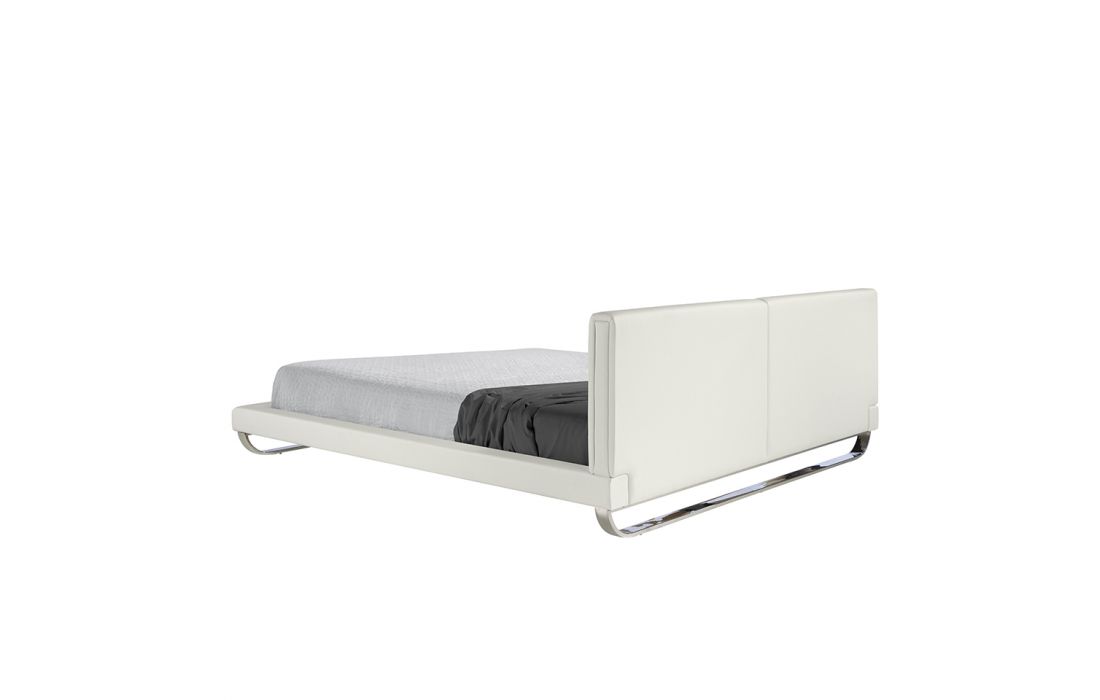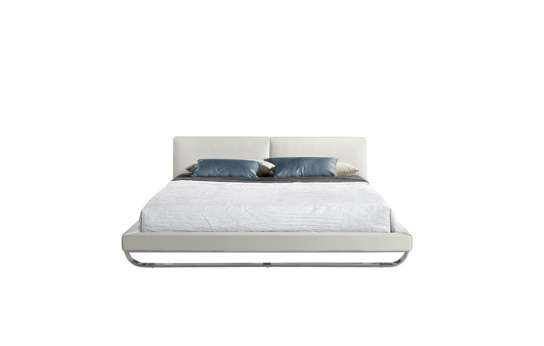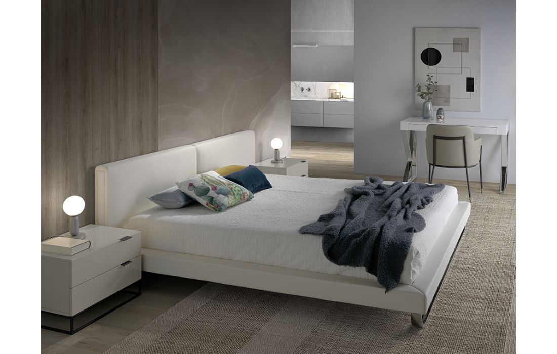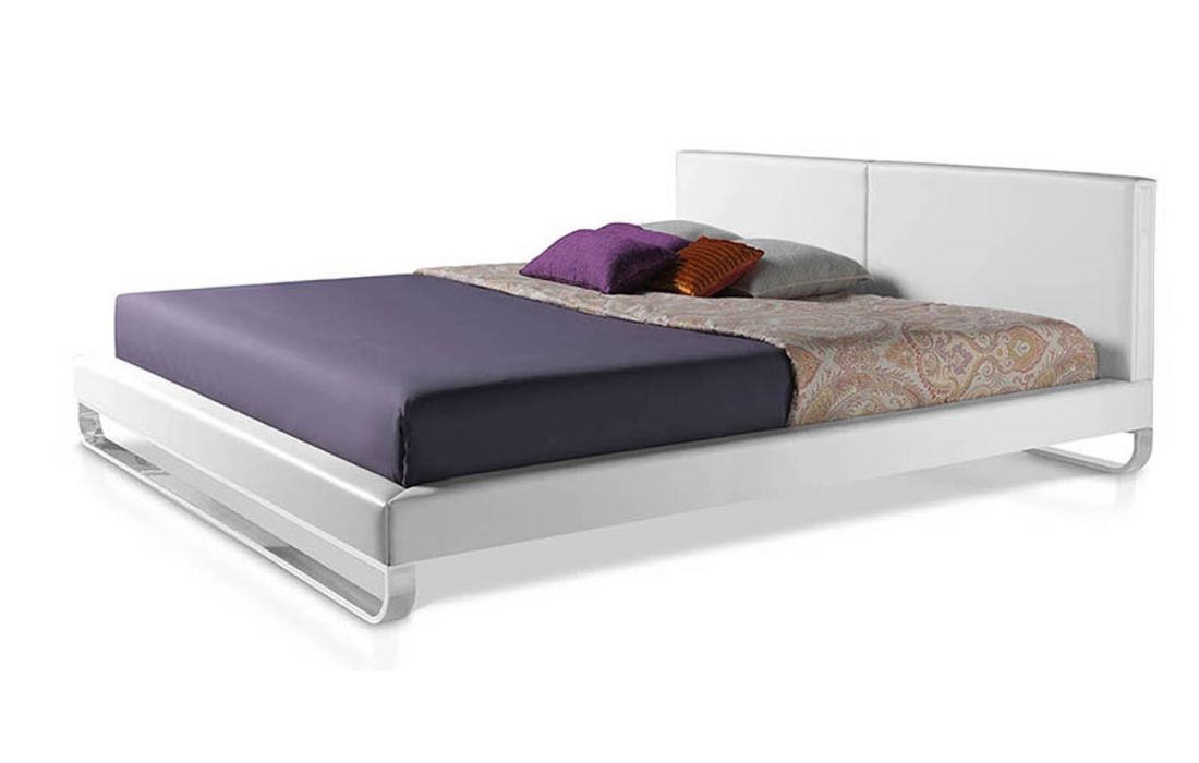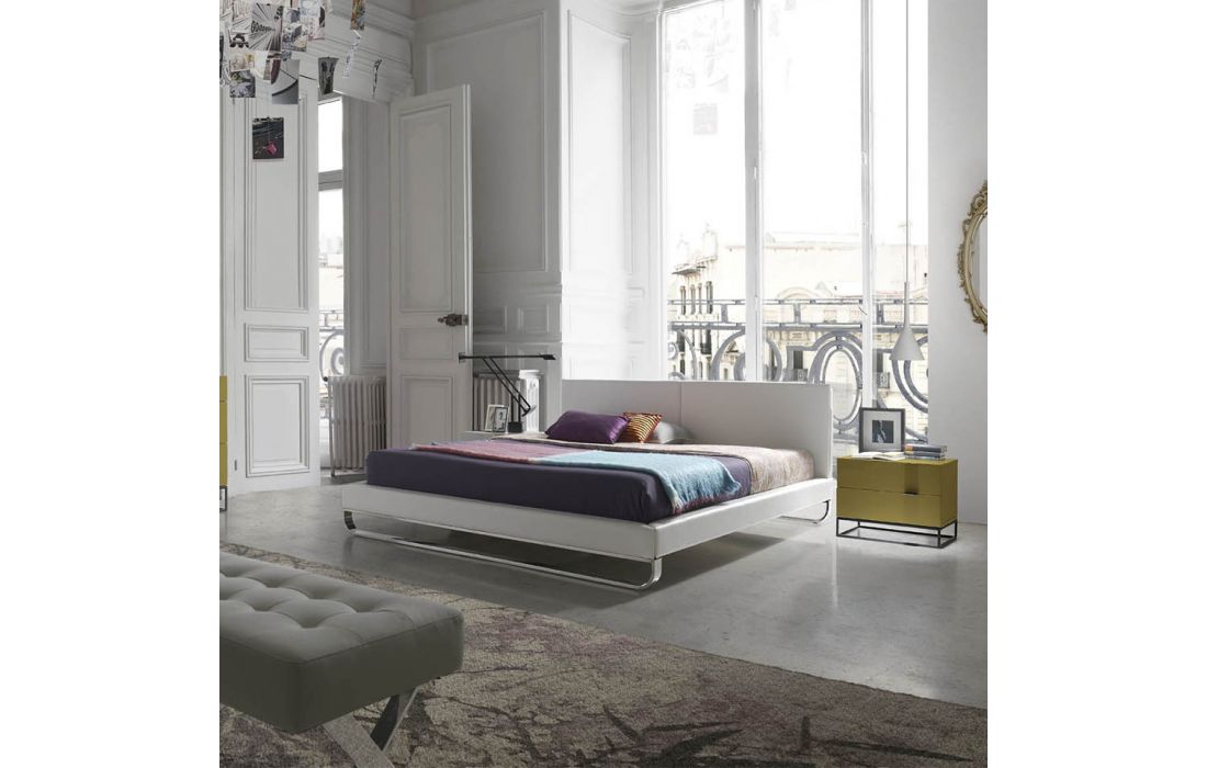 Bed upholstered in leatherette with polished solid steel legs. Pine wood multi-slat bed base included.Recipient :