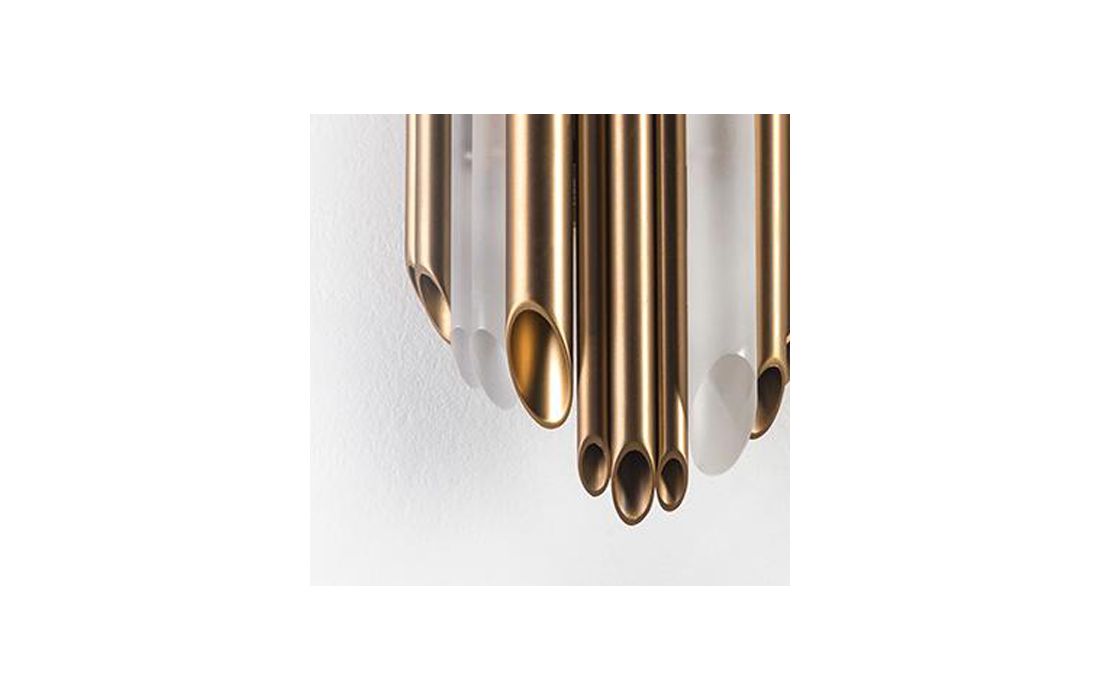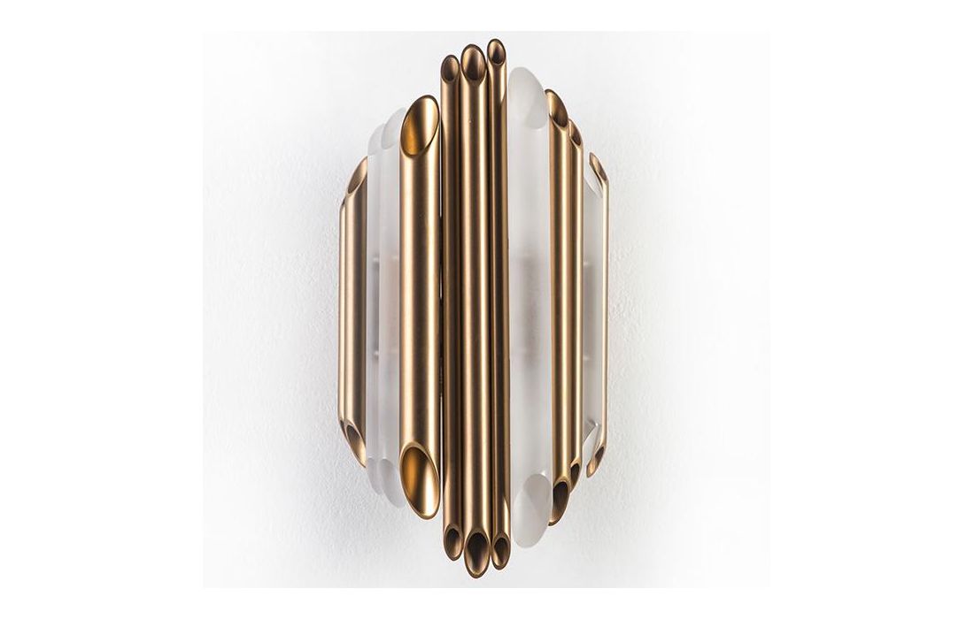 Wall lamp in acrylic and gold metal.