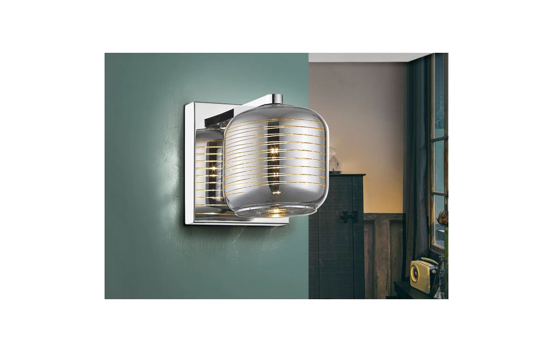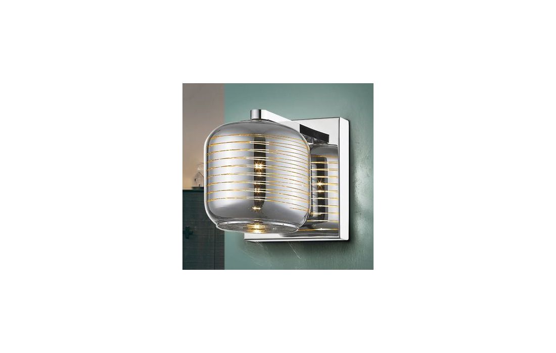 1 light wall lamp in metal chrome finish. Mirrored glass tulip with transparent lines pattern.