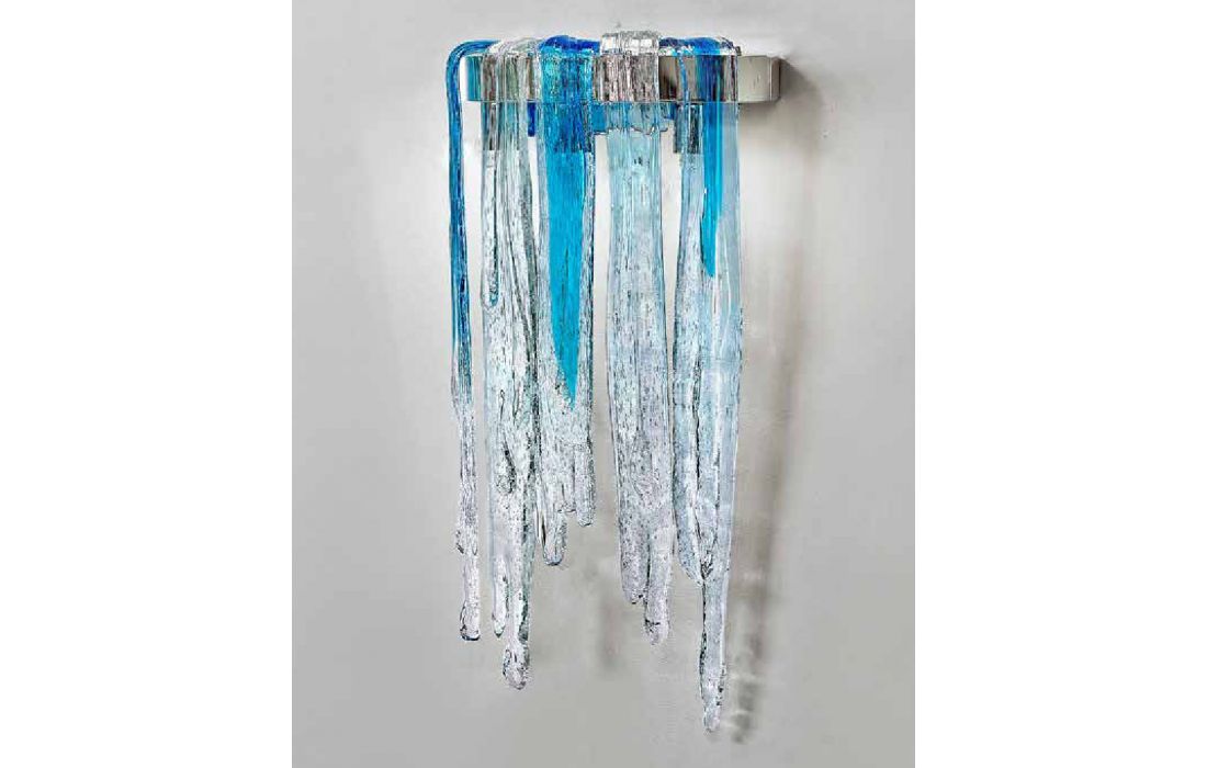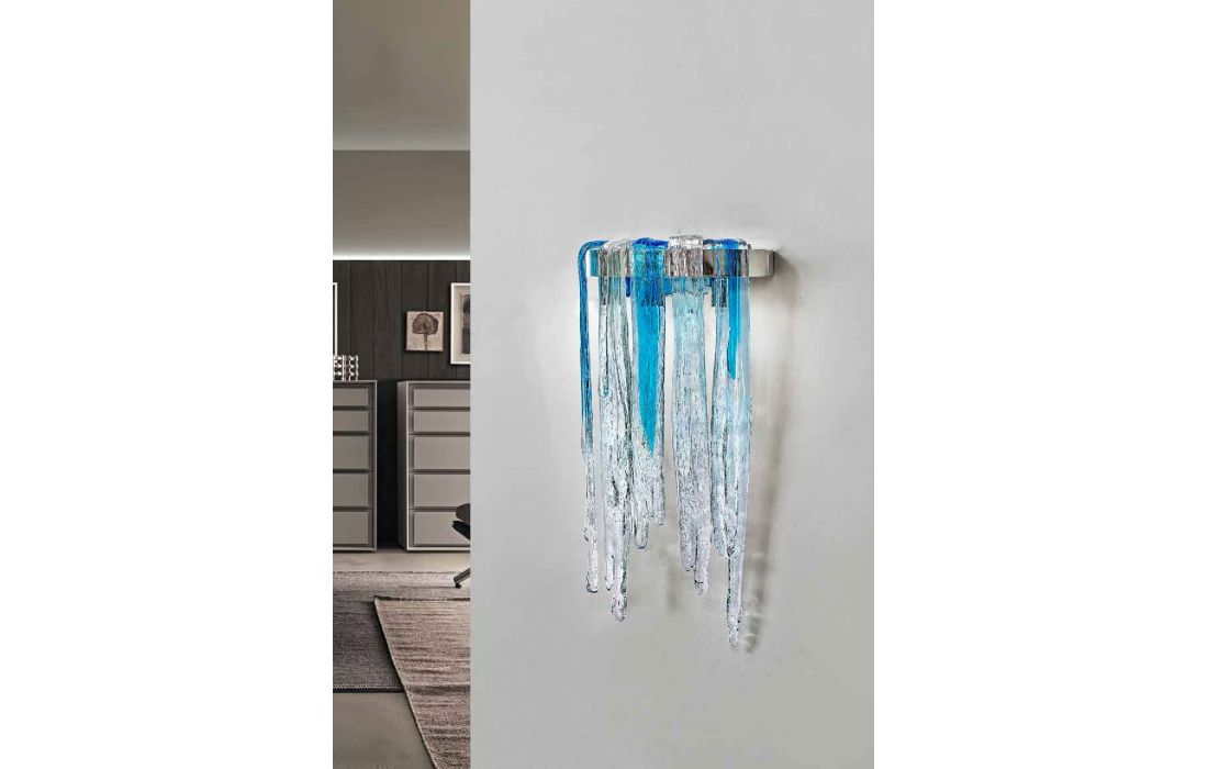 Wall lamp with shape in fallen glass with a little touch of blue tone. Modern, this lamp is ideal for various types of spaces.