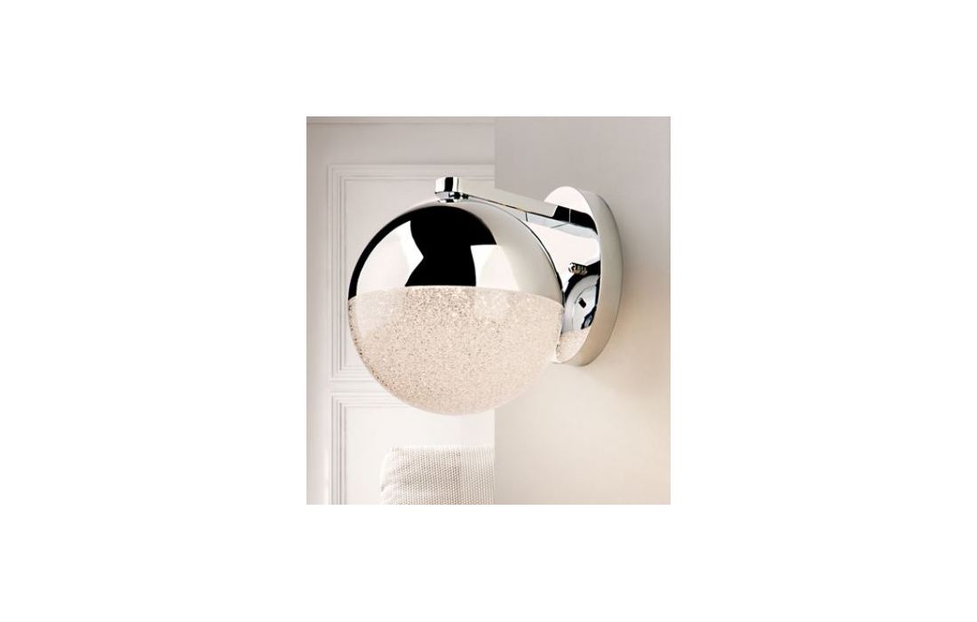 Wall lamp 1 light metal, chromium finish. Spherical metal and polycarbonate tulip with textured interior.