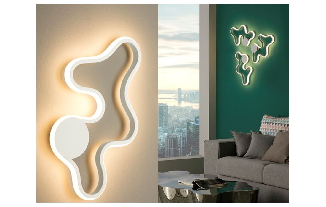 Ceiling lamp or LED wall light, metal and aluminum, white sanded finish. Silicone diffuser.