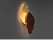 Metal wall lamp with gold leaf finish and oxide brown steel.