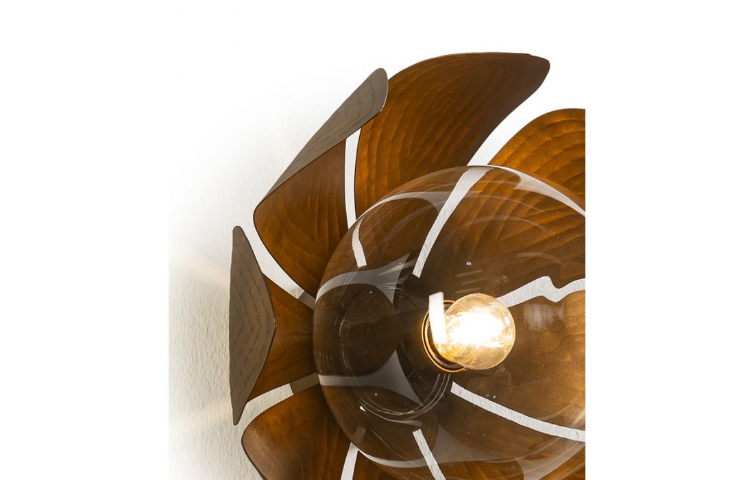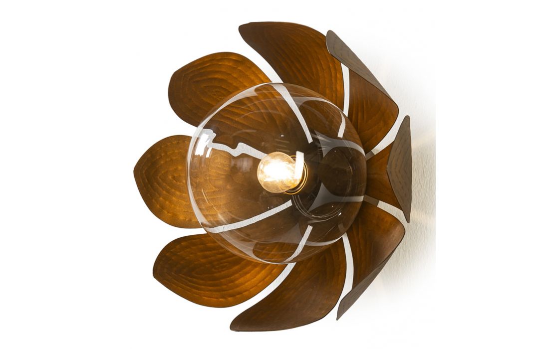 Wall lamp made of golden metal and clear glass