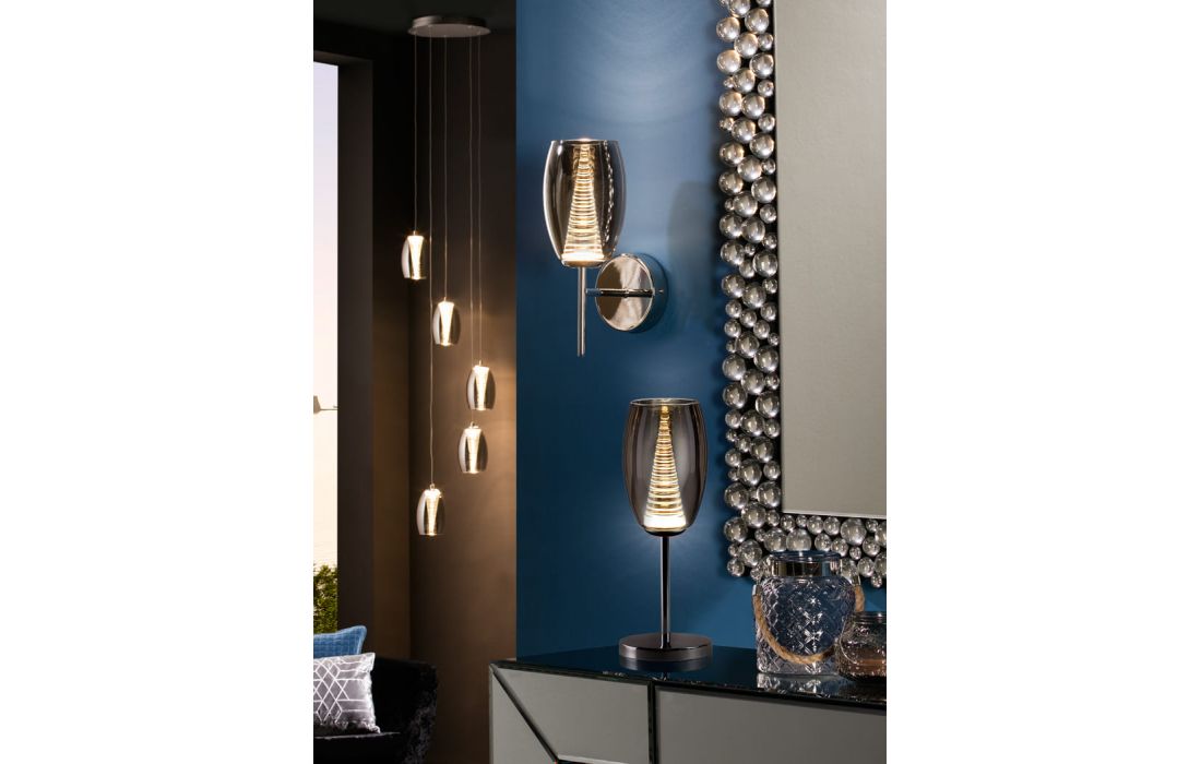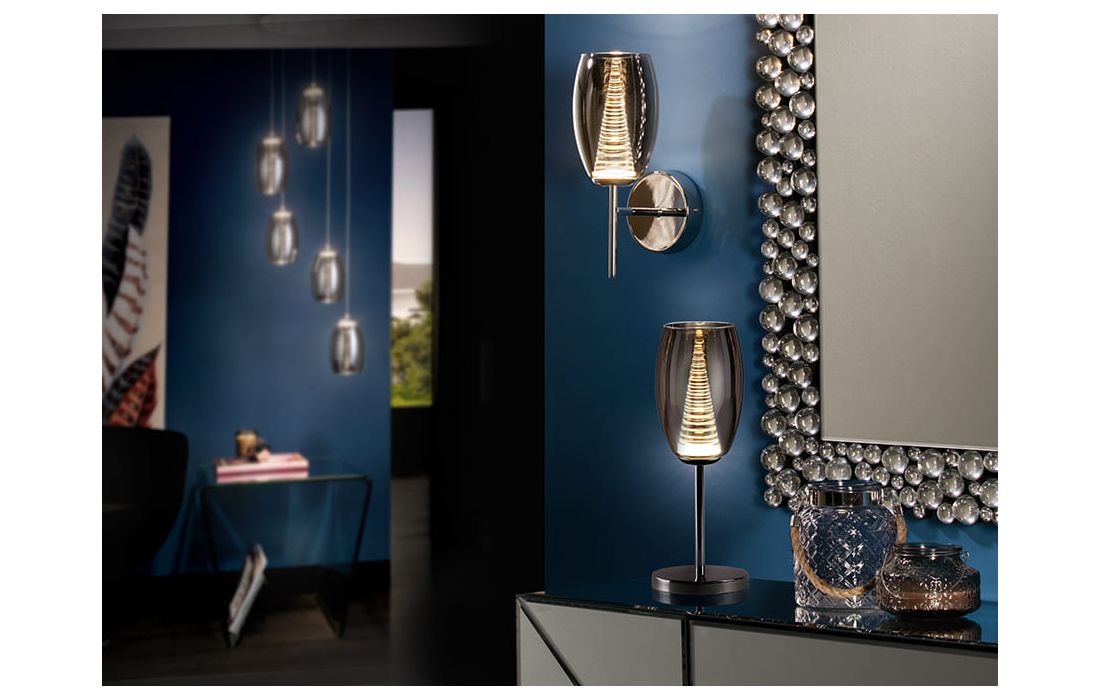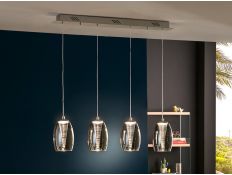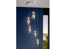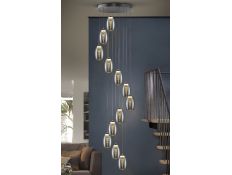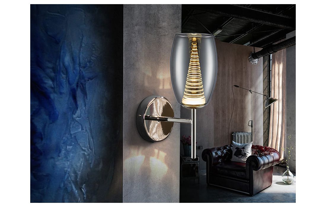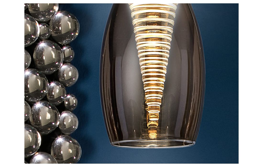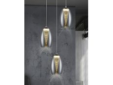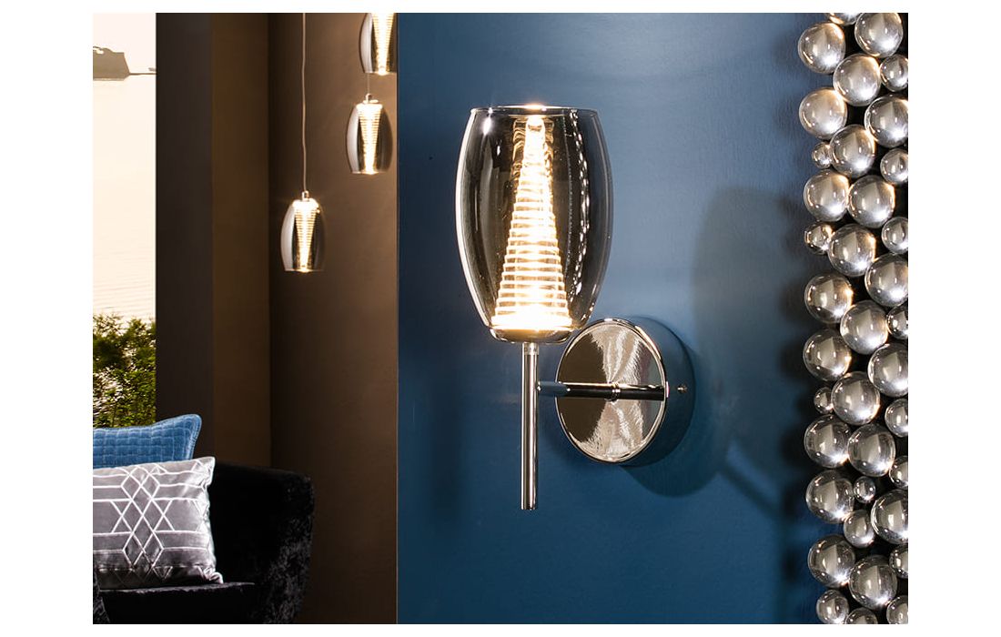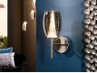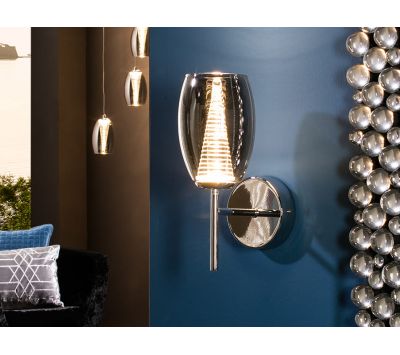 Ceiling lamp 1 light in metal chrome finish. Double tulip, exterior made of mirrored glass and interior in transparent polycarbonate in the shape of a stepped cone.