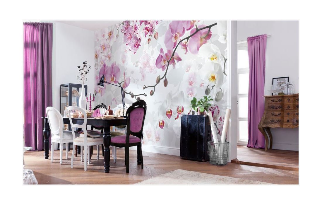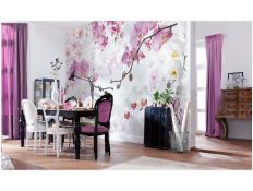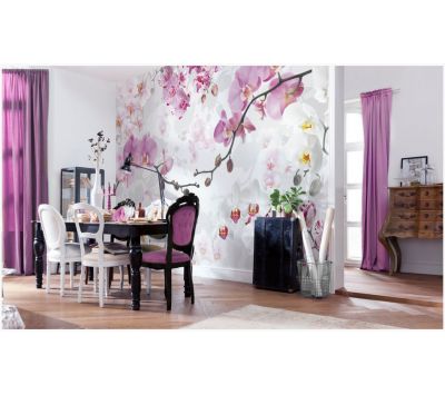 As gentle as the flap of a butterfly's wing, delicate shades of violet and pristine white wind their way along the wall. Let your body, mind and soul relax in the midst of these delightful blossoms.