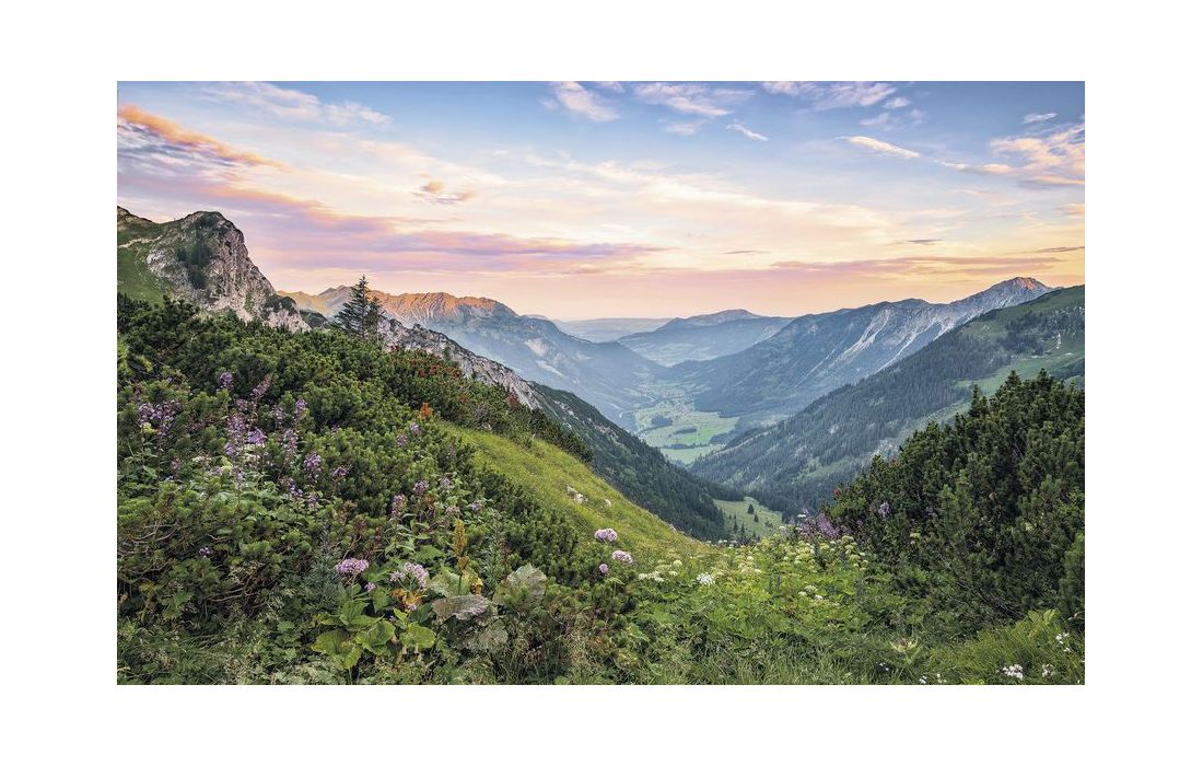 Alpine romantic! The Bavarian high alpine area is covered in pink morning lights.