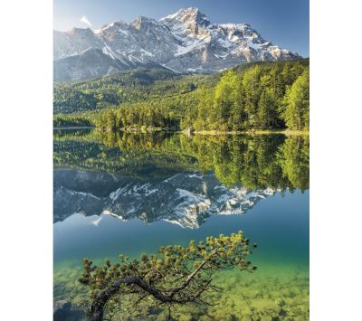 The mountain “Zugspitze” rises 2962 meters above the crystal clear Eibsee lake in southern Bavaria.