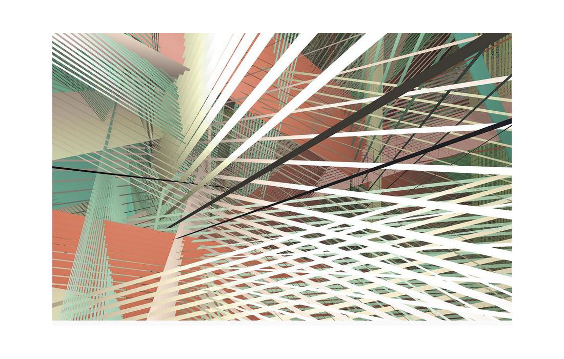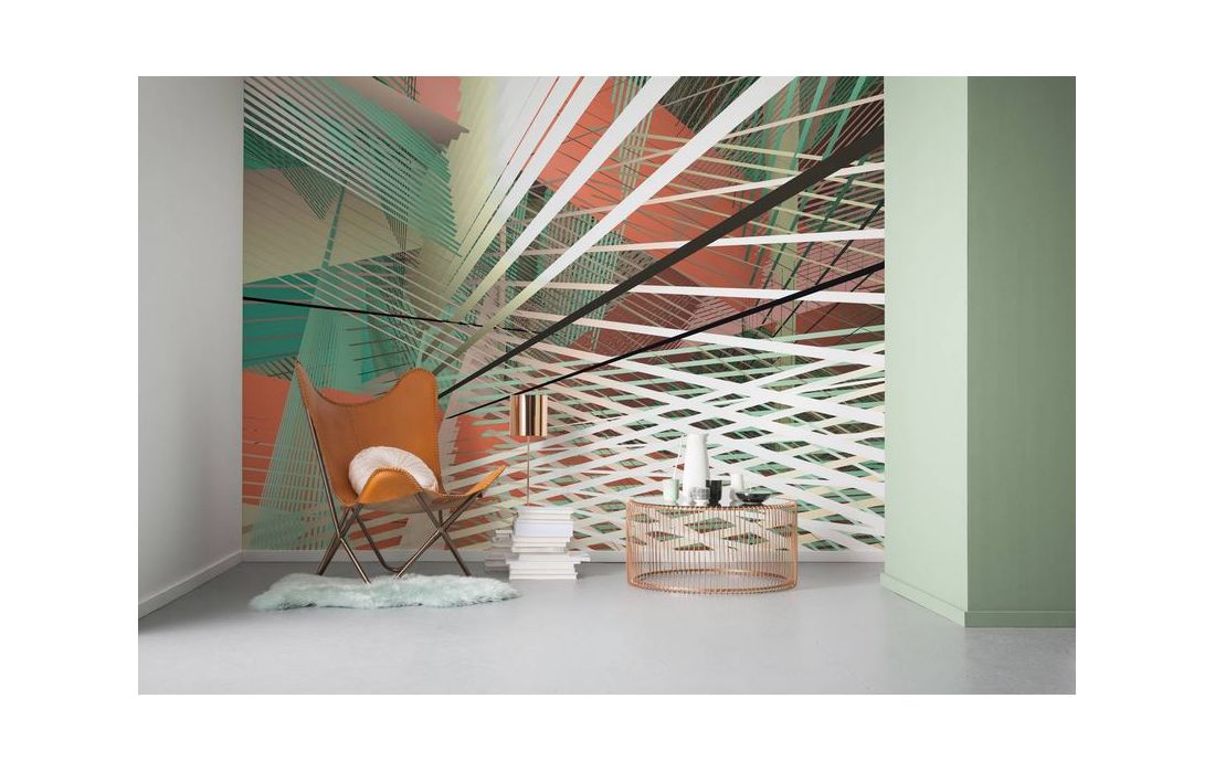 Psychedelic dream: geometric shapes with visual depth – in masculine mint and coral.