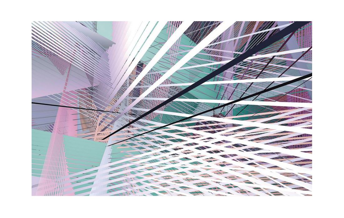 Psychedelic dream: geometric shapes with visual depth – in feminine turquoise and violet.