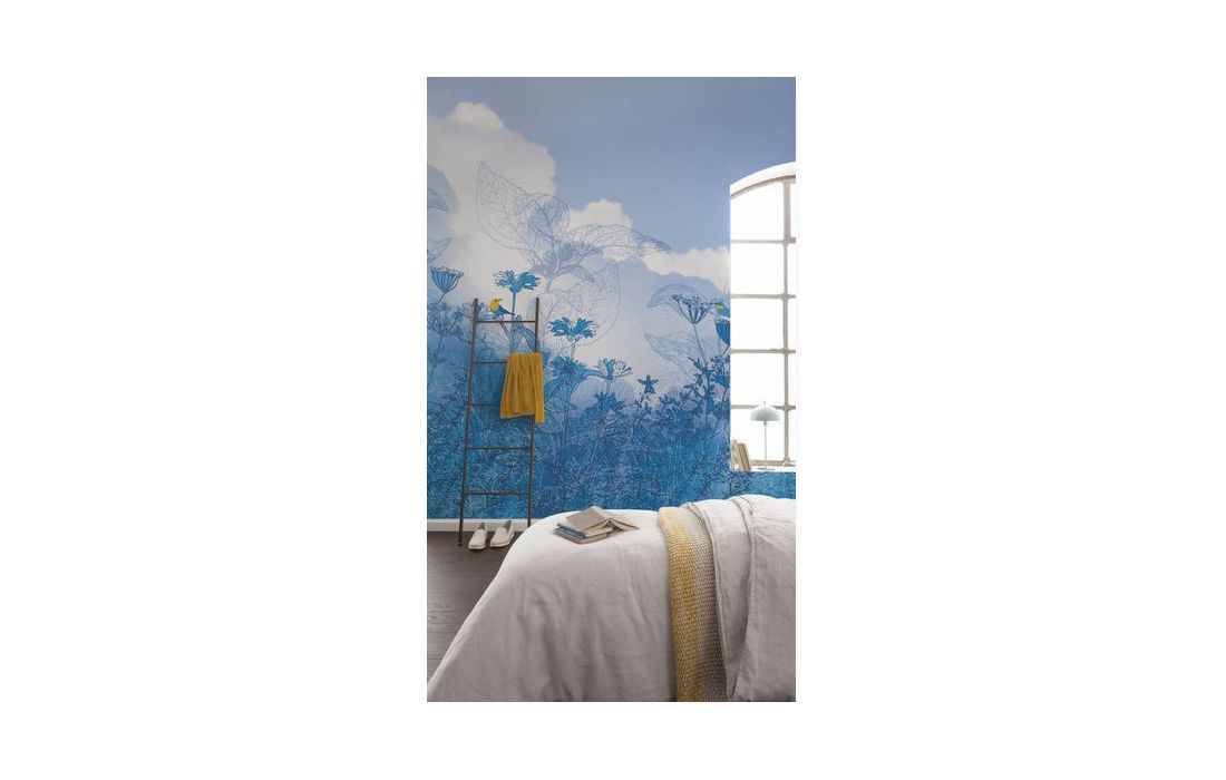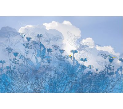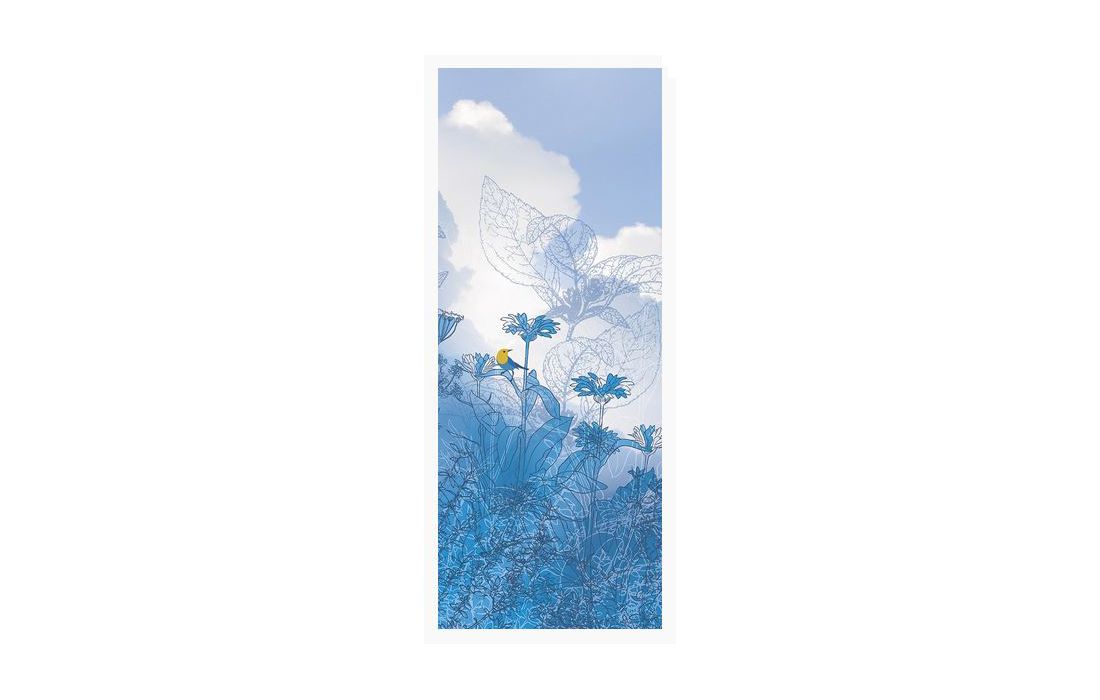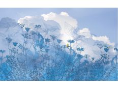 Bird’s view! Transparent landscape sketch against a photo of the sky with two little birds as eye-catching features.