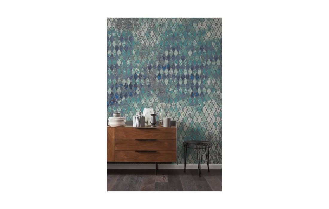 Aqua-coloured camouflage pattern enhanced with silvery glitter.