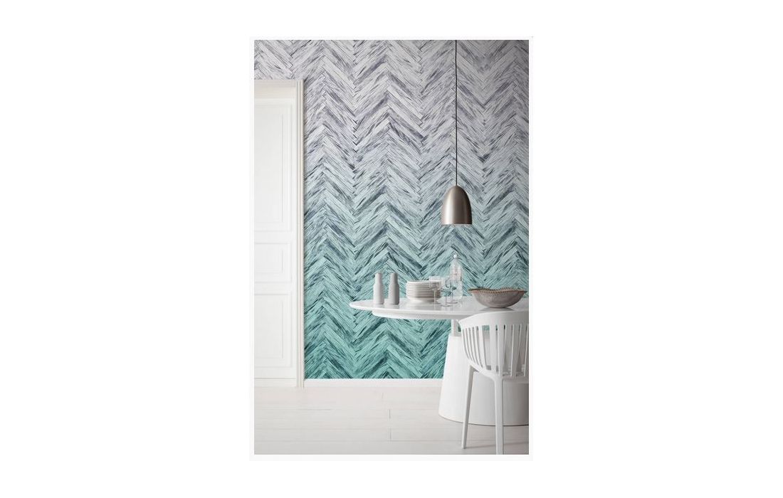 A new look for old wood: fishbone parquet with a modern progression of colour in turquoise.