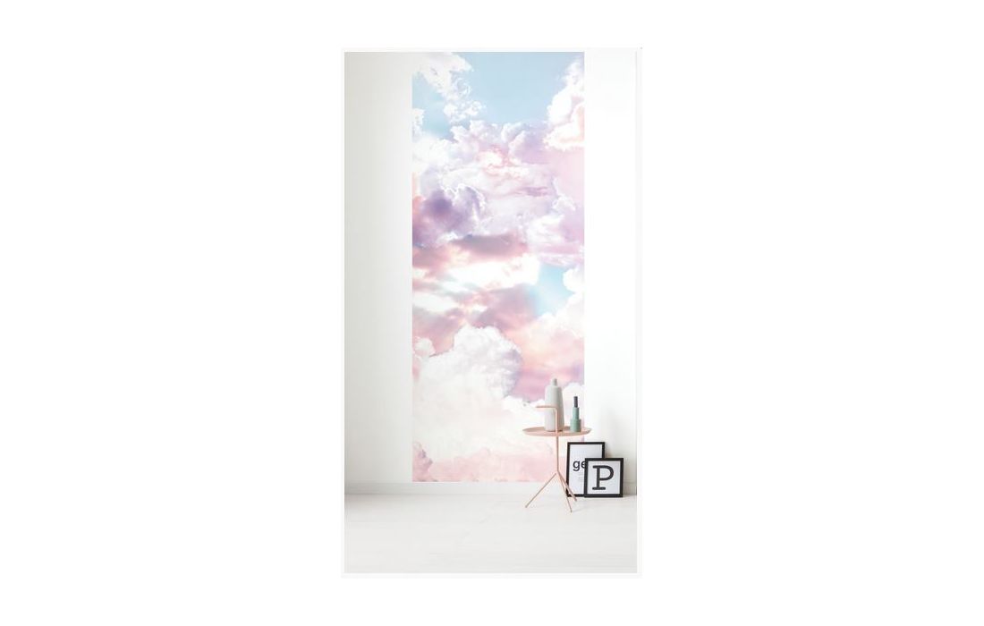 So close to the heavens! A speck of blue sky flashes out between pink fluffy clouds.