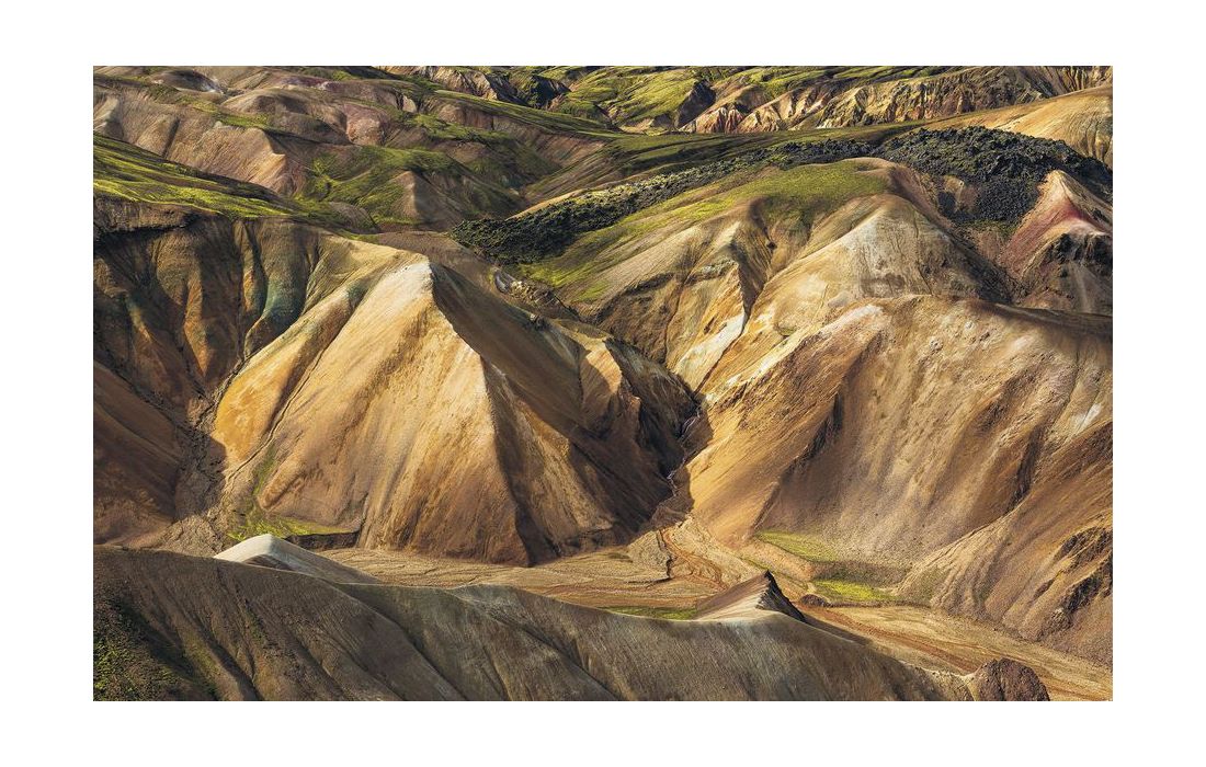 Looks like painted with brushes - the rocky landscape of Iceland looks like golden sunlight.